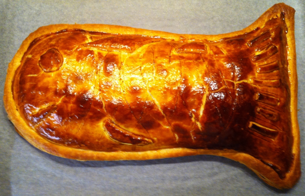 Volendo, con un taglia pasta, è possibile rifinire i bordi, tagliando l’eventuale pasta in eccesso (lasciare almeno un centimetro di chiusura) o per dare una forma particolare la nostro piatto (ad esempio a forma di pesce; nel caso facessimo una forma di pesce con la pasta avanzata possiamo decorare il tutto ad esempio applicando dei pezzi a forma di pinna, occhi o bocca; oppure incidendo la pasta; sbizzarritevi come volete !).