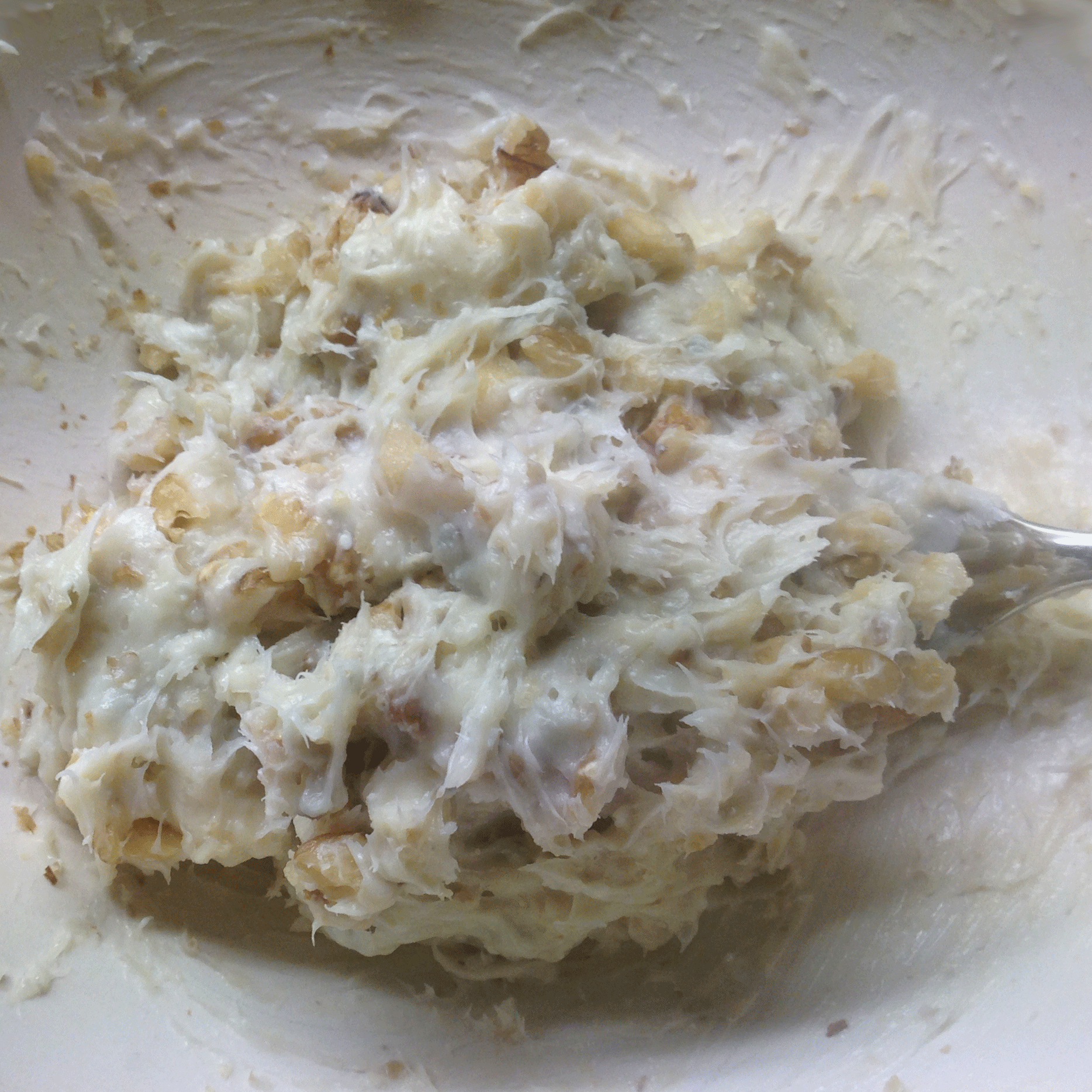 Con una forchetta lavorare il gorgonzola e aggiungerci le noci.