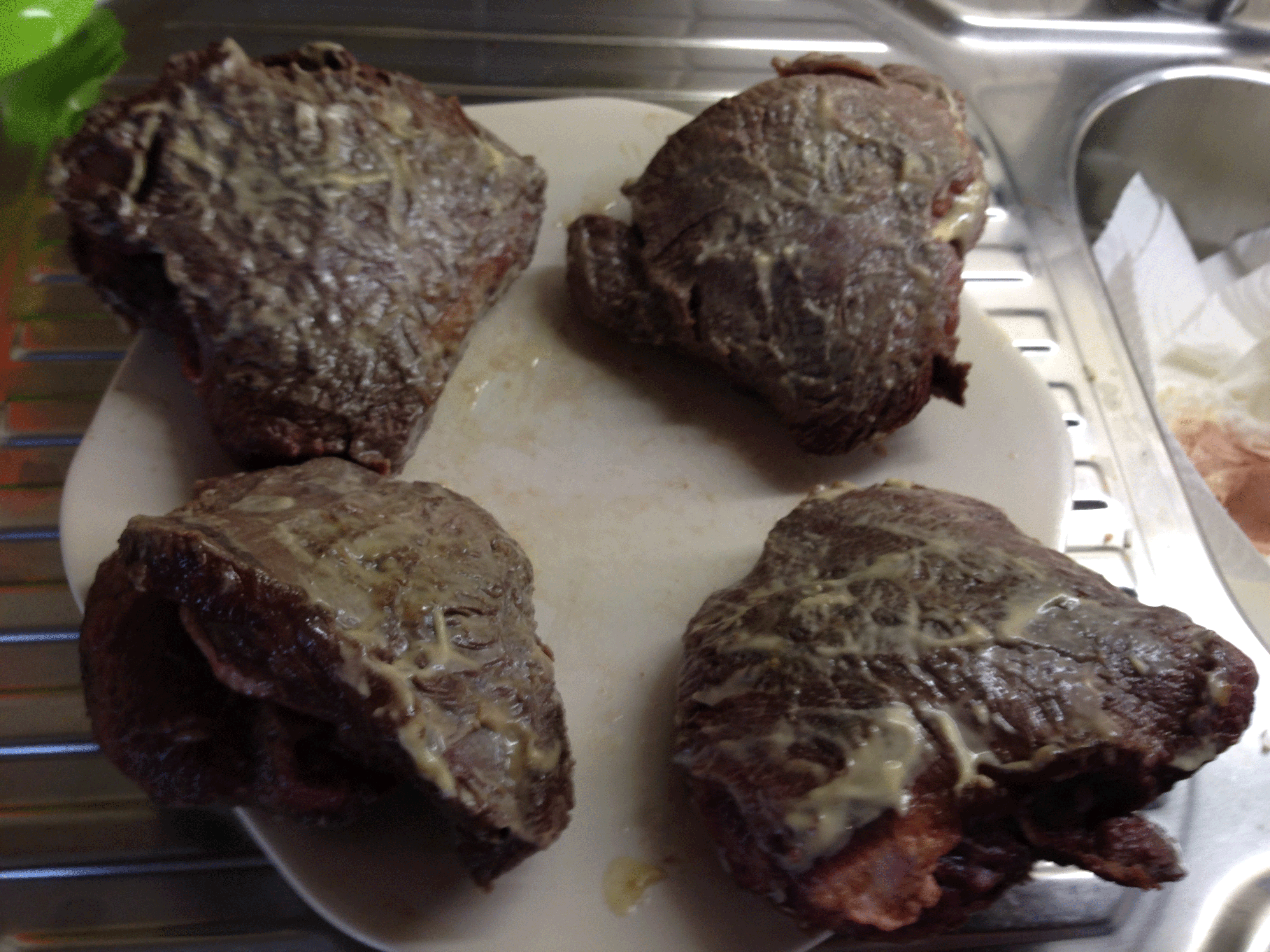 Togliere le guance dal fuoco, massaggiarle con un po’ di senape e metterle da parte.
