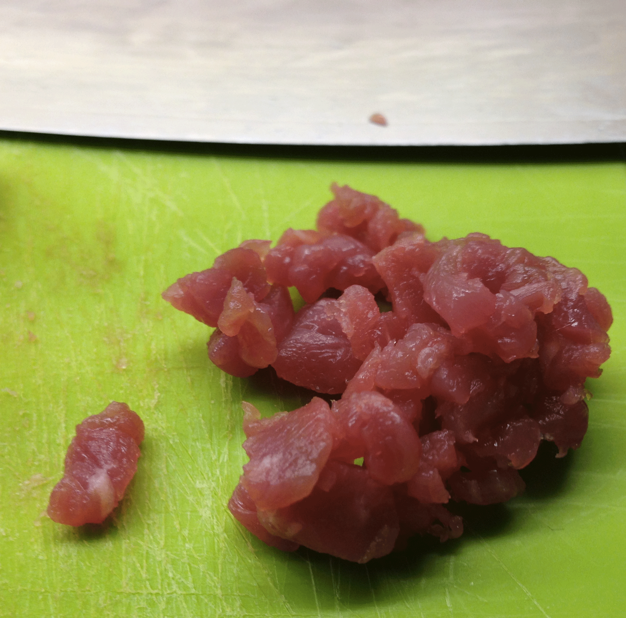 E le striscioline, a loro volta, in piccoli pezzettini.