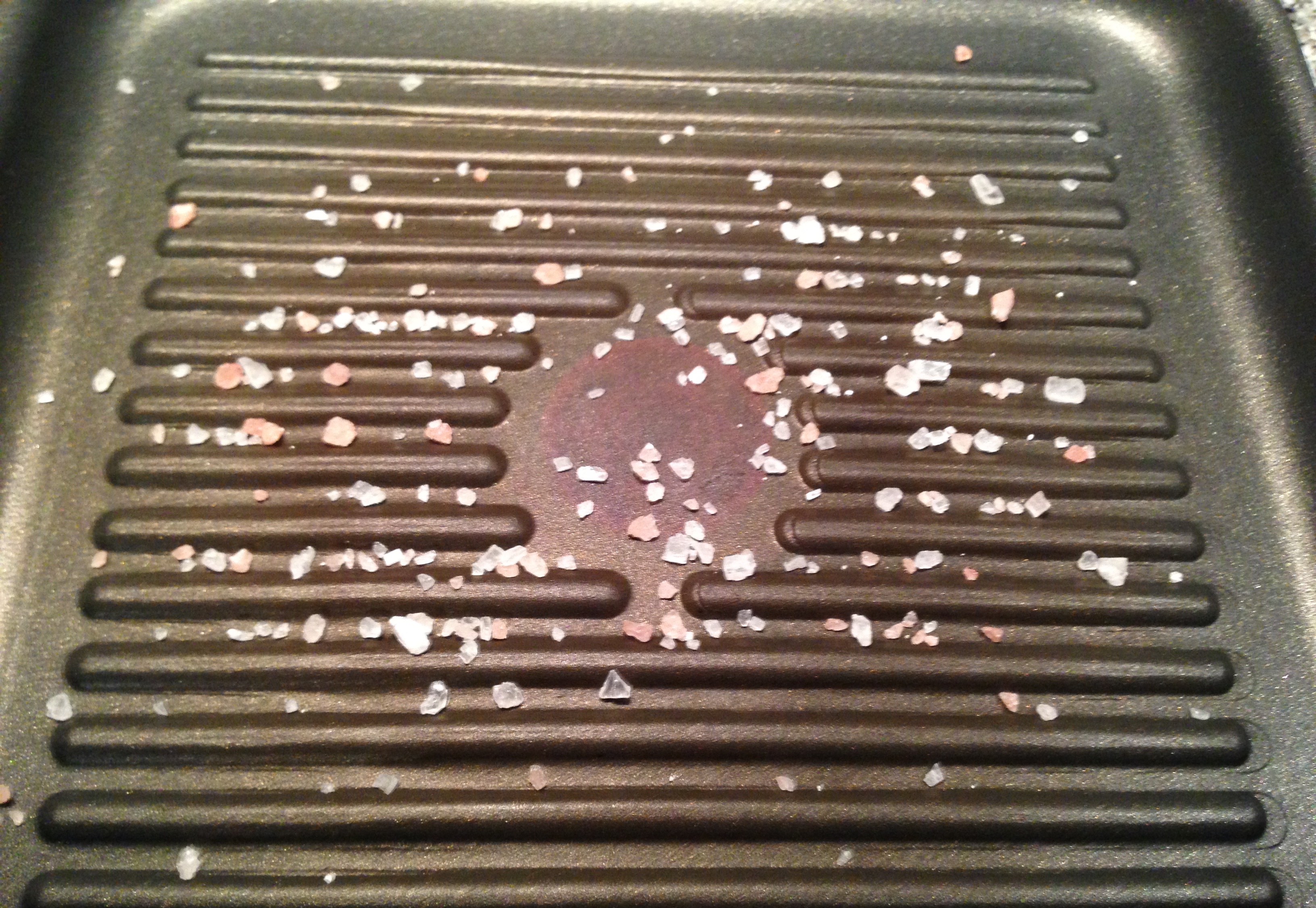 Portare a temperatura una padella a griglia in ghisa.