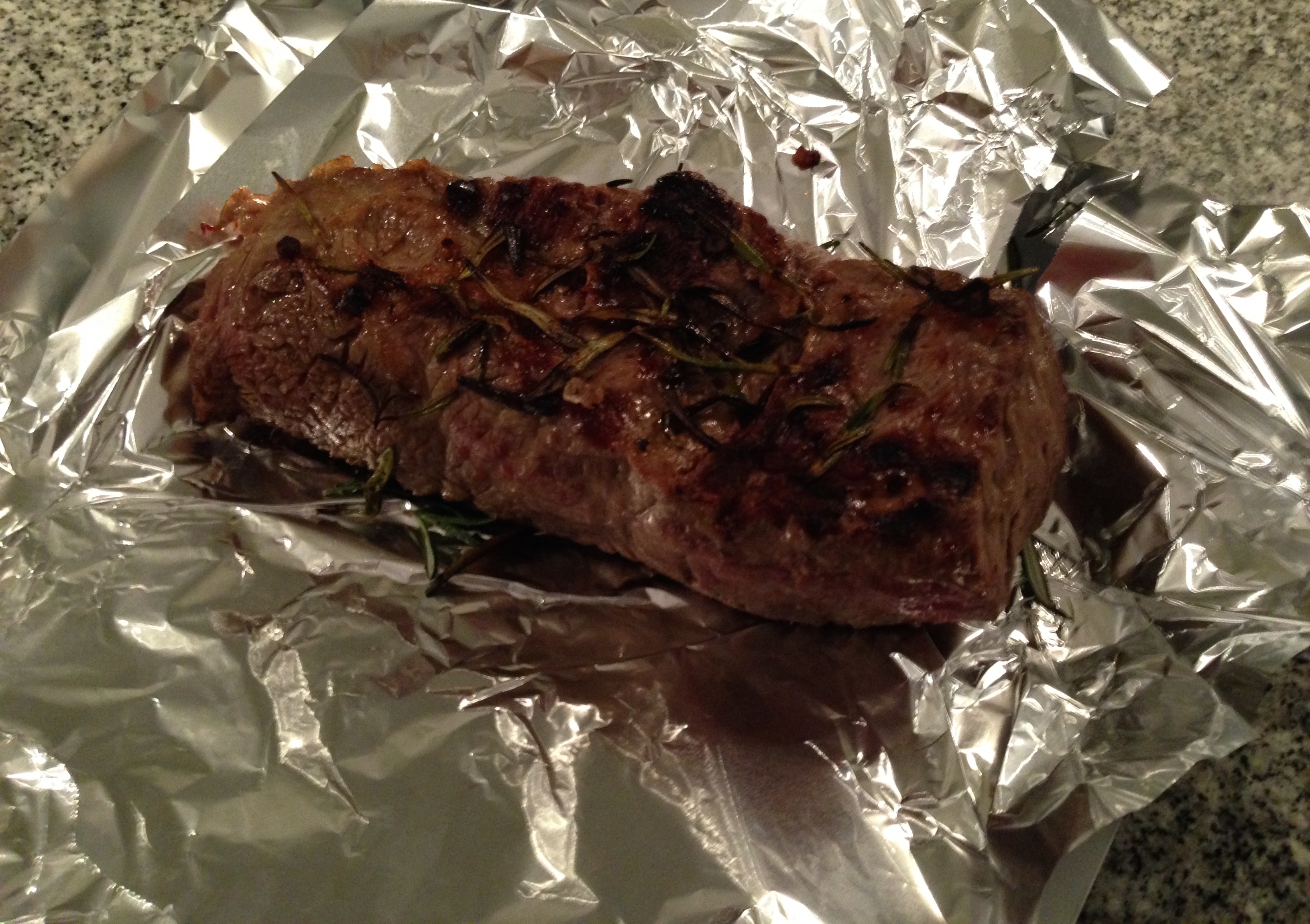 Dopo altri 5 minuti togliere dal fuoco e lasciare riposare la carne per 2/3 minuti avvolta nella carta alu.