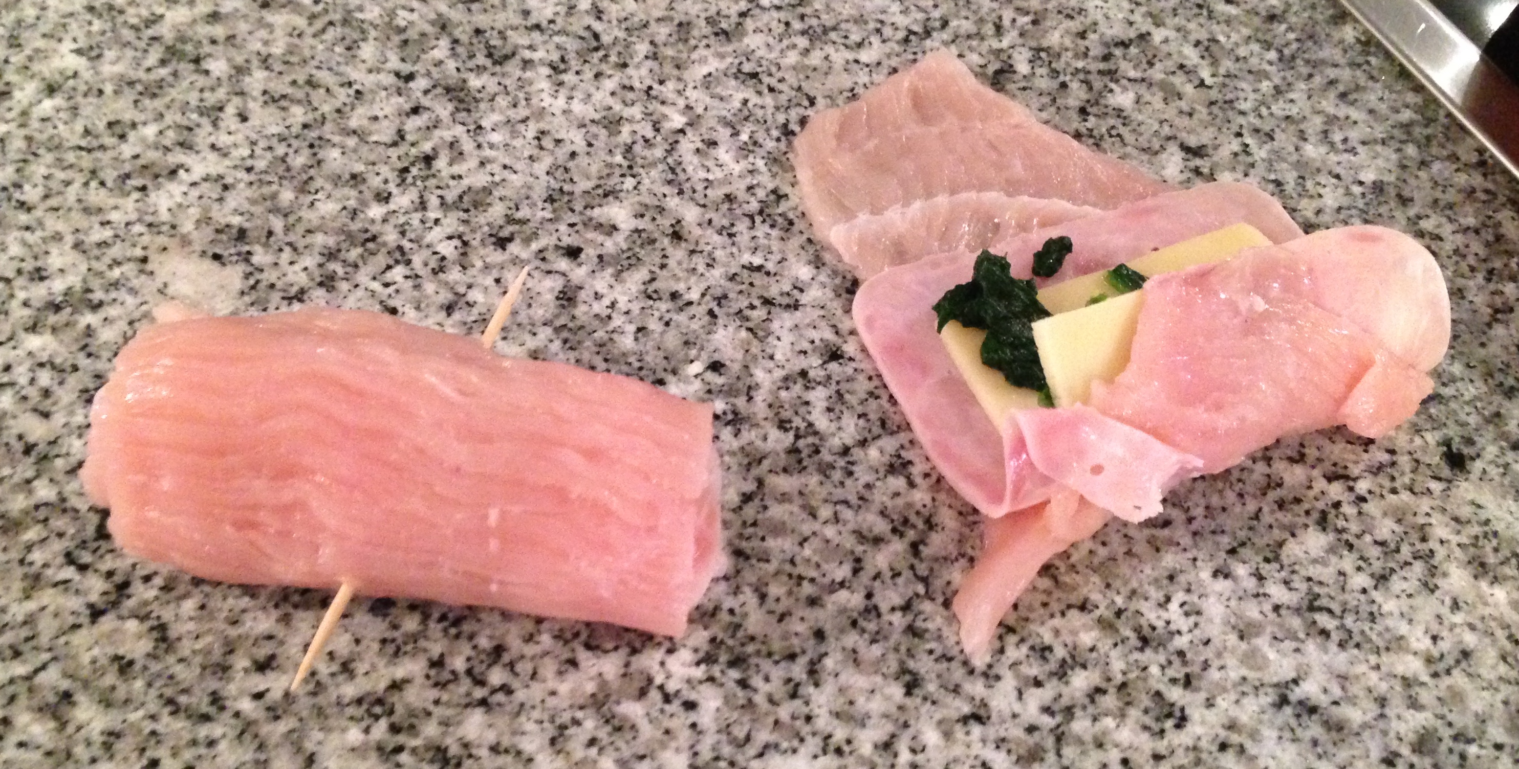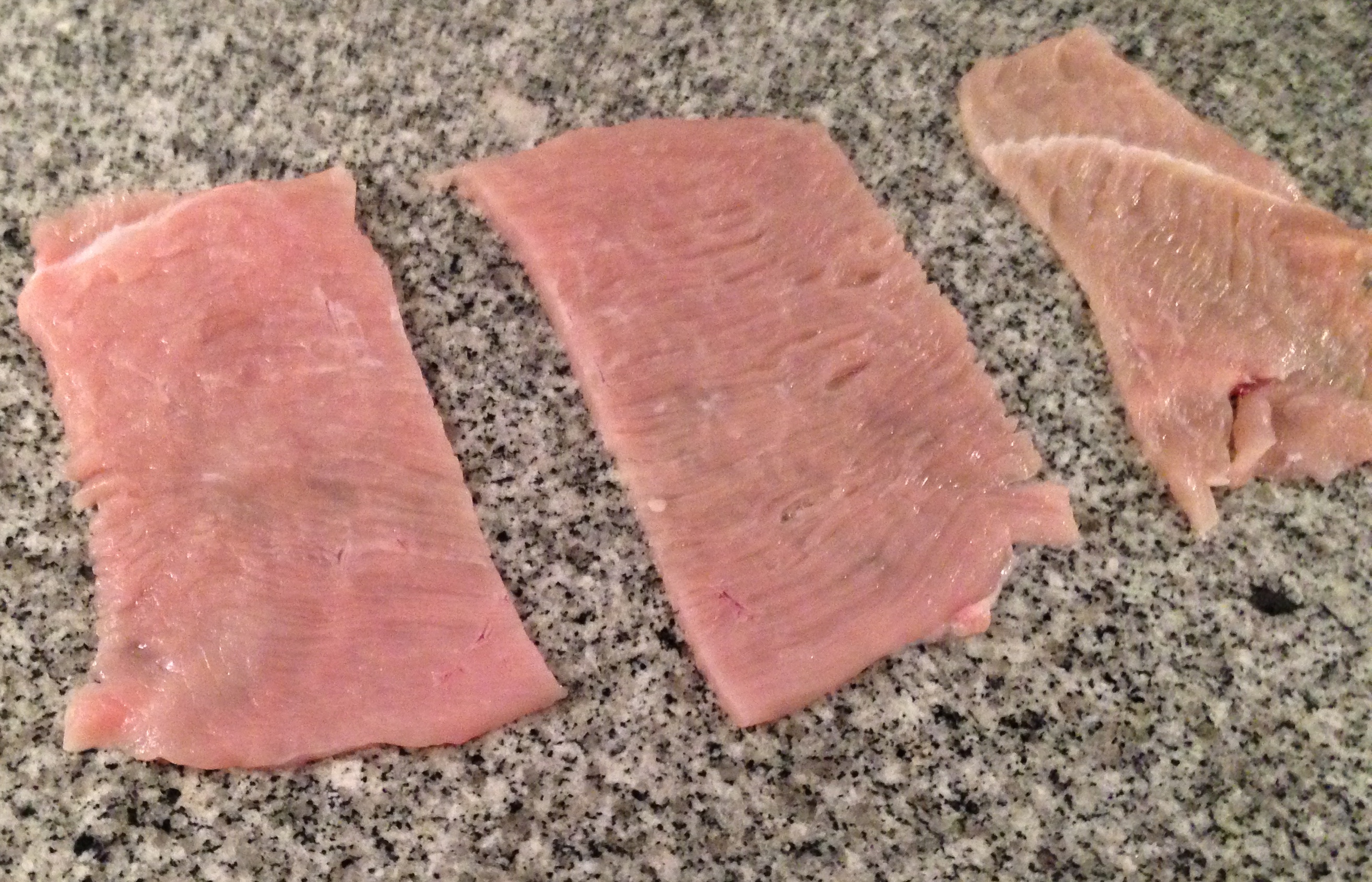 Potete usare sia pollo che tacchino. Visto che servono delle fettine molto fini il consiglio è quello di acquistare direttamente quelle esistenti in commercio già tagliate fini (tipo charbonnade) oppure farsele tagliare dal proprio macellaio. Potete farlo anche autonomamente ma avrete molti scarti.