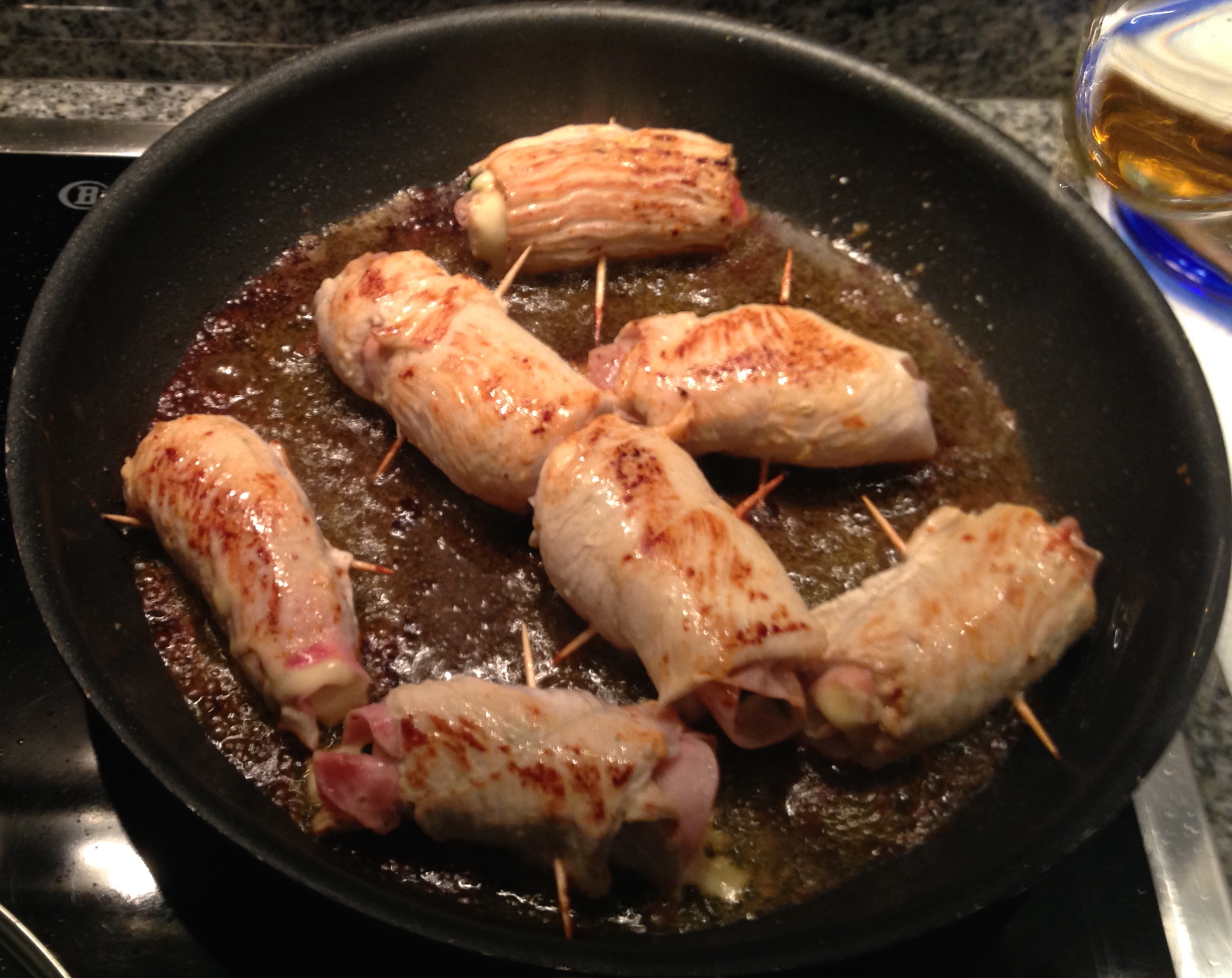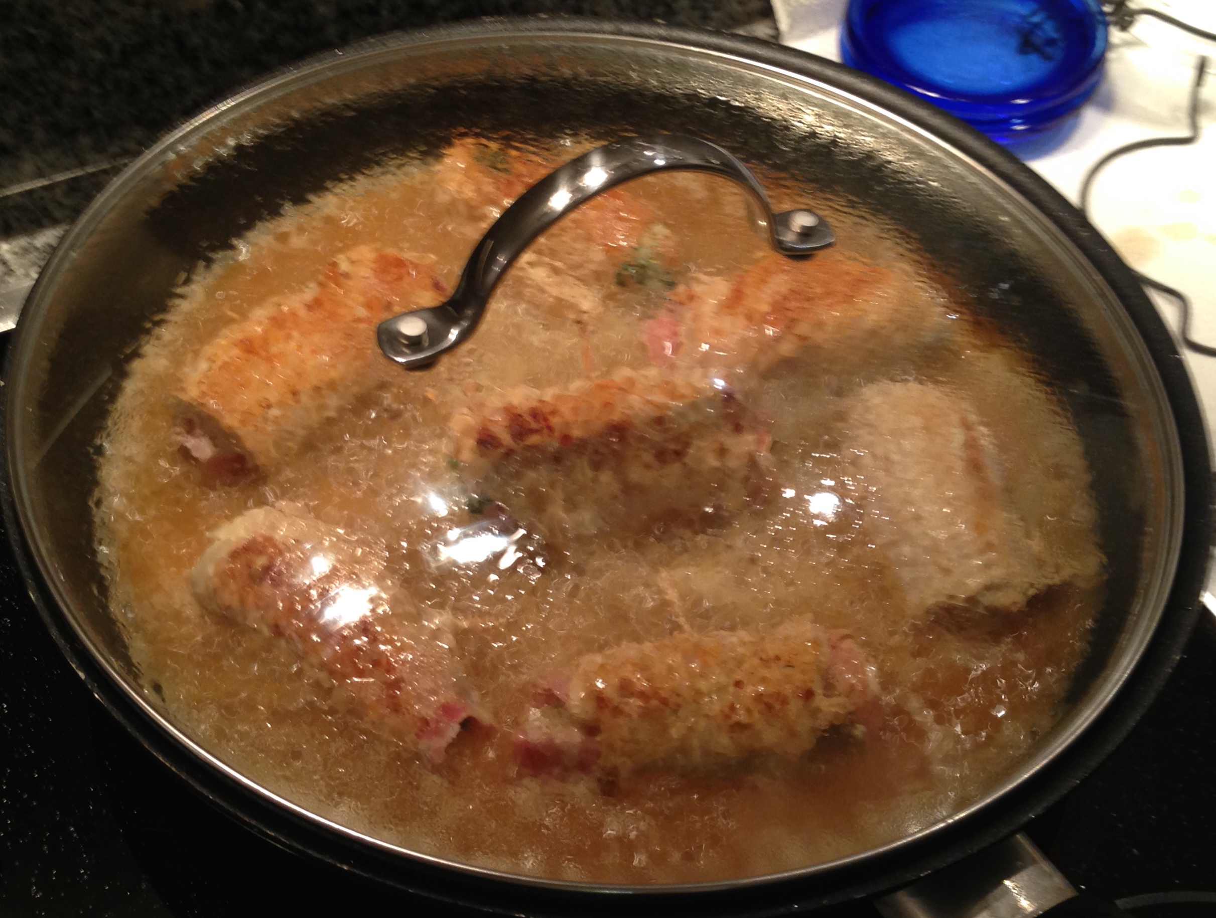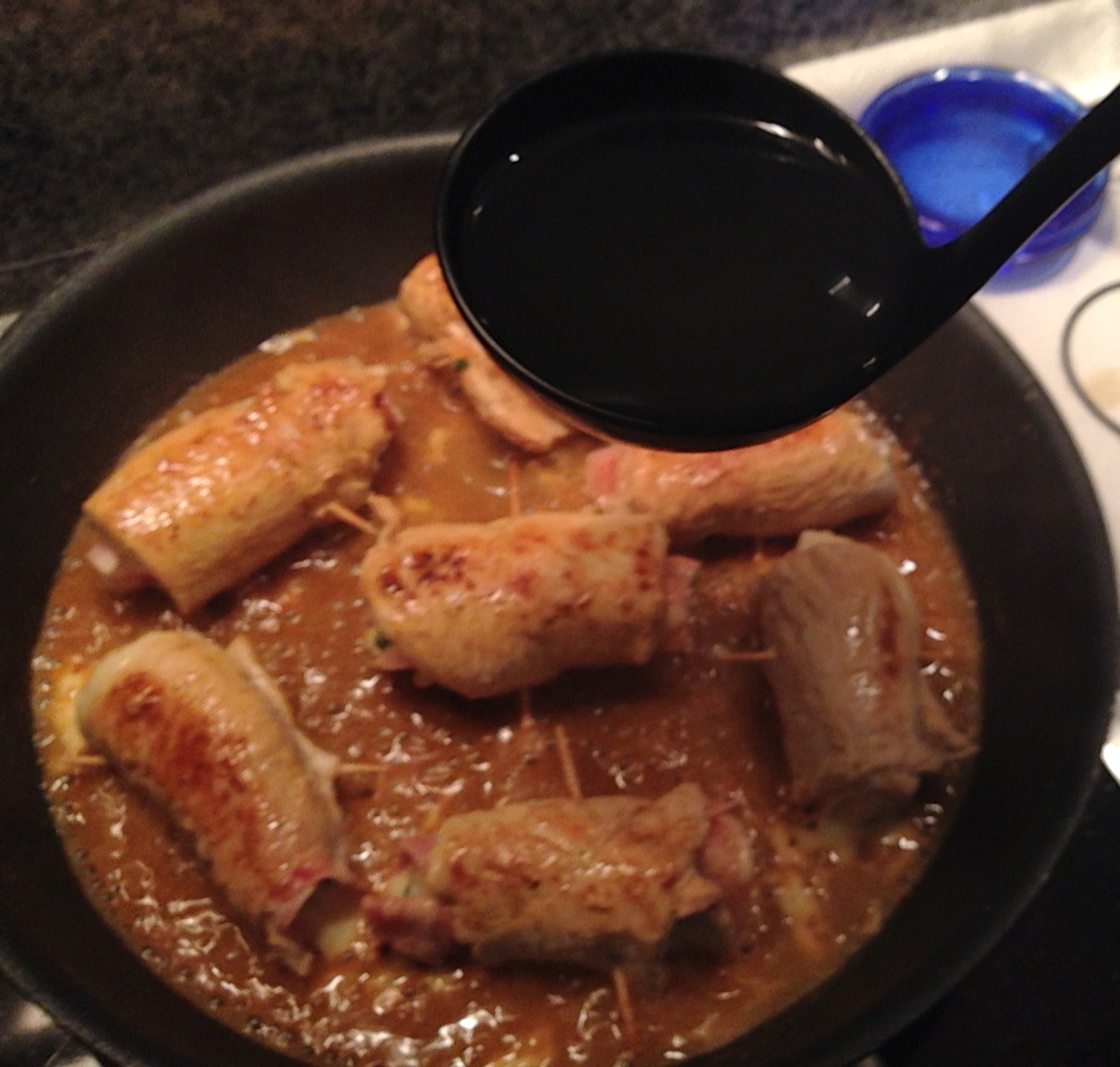 Gli involtini sono pronti, tenerli in caldo e, far evaporare il liquido in eccesso dal fondo di cottura per ottenere una buona salsina.