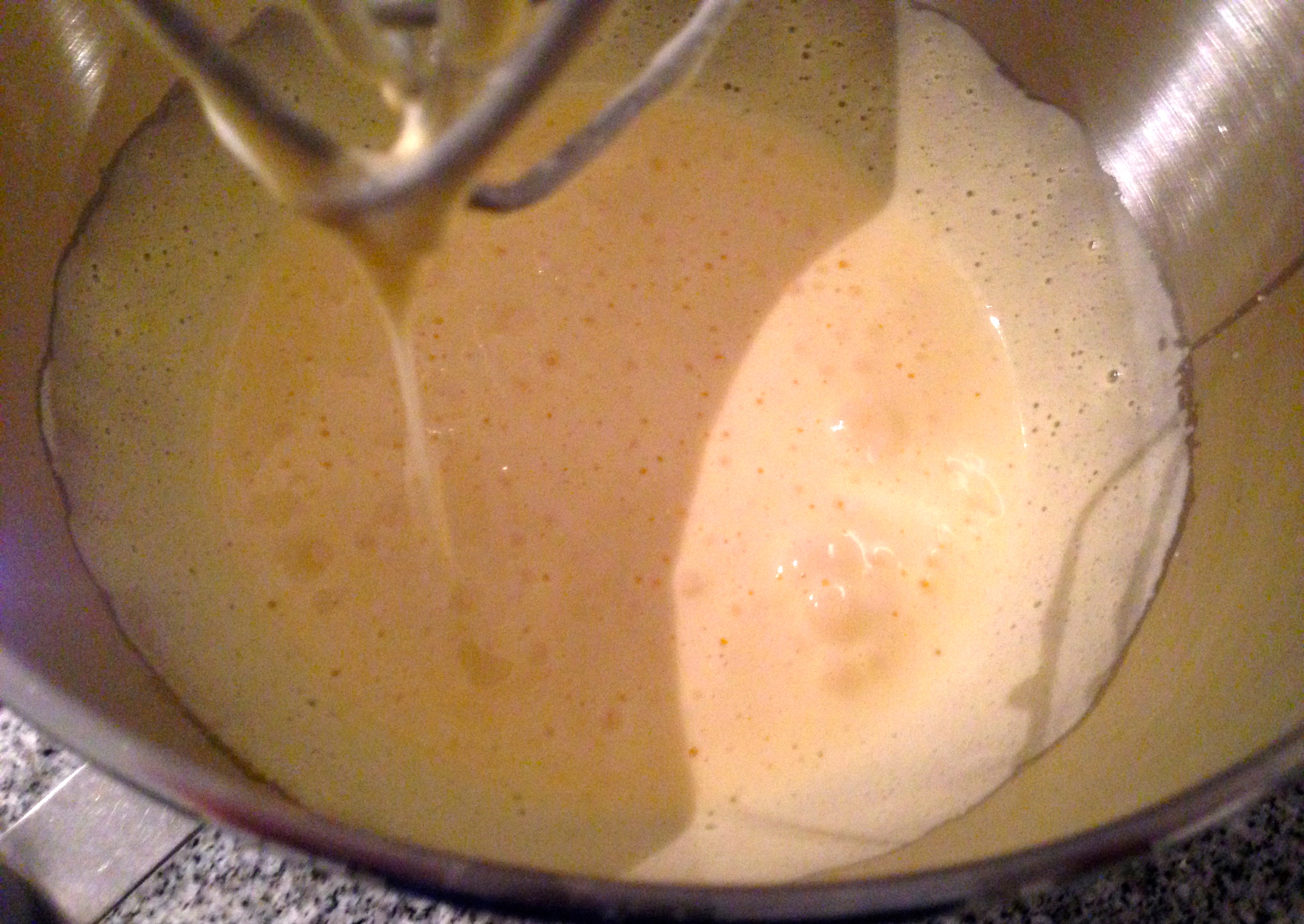 Sbattere uova e zucchero fino ad ottenere un composto bello spumoso.