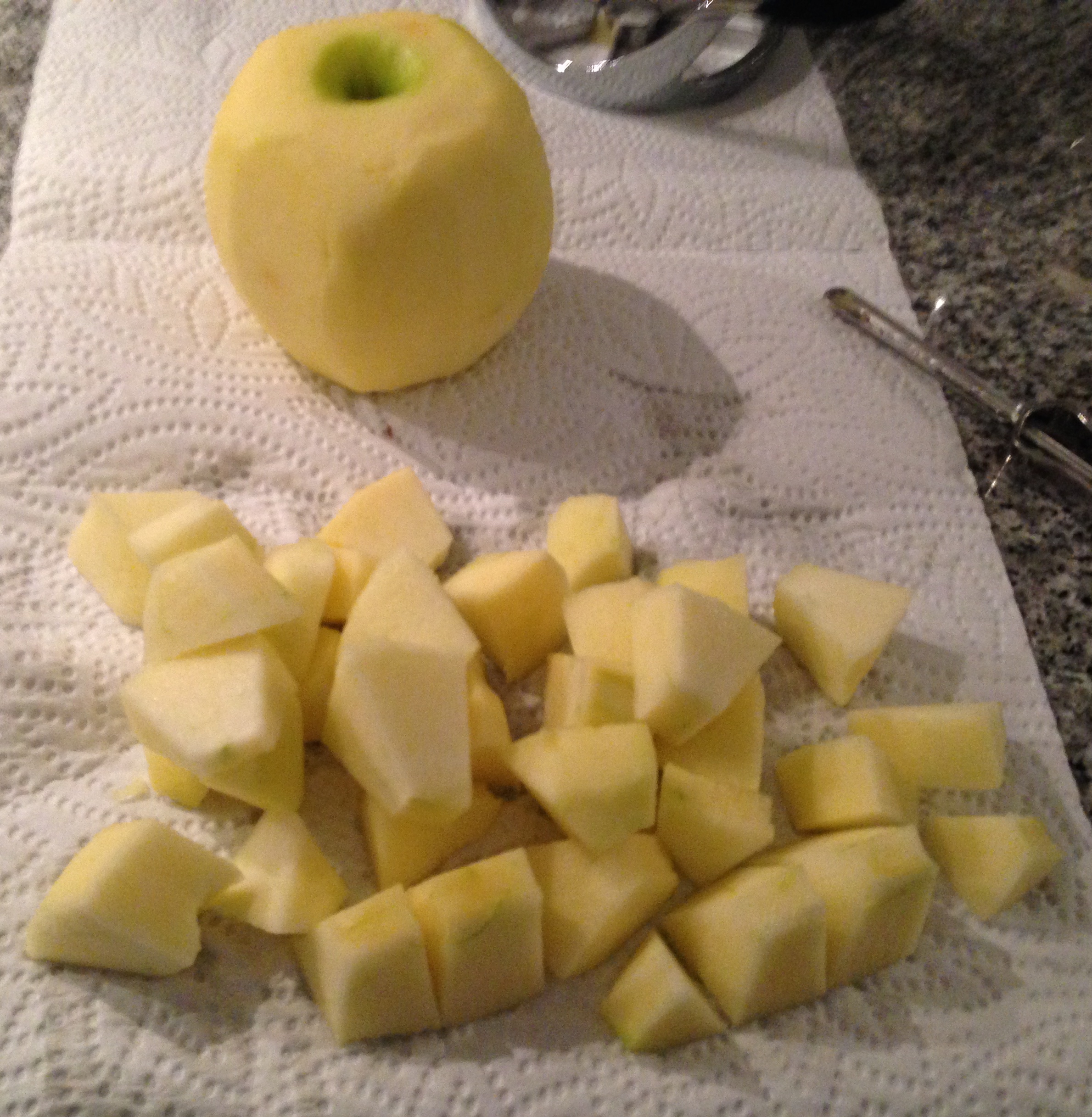 Tagliare grossolanamente le mele a cubetti di 2 cm circa.