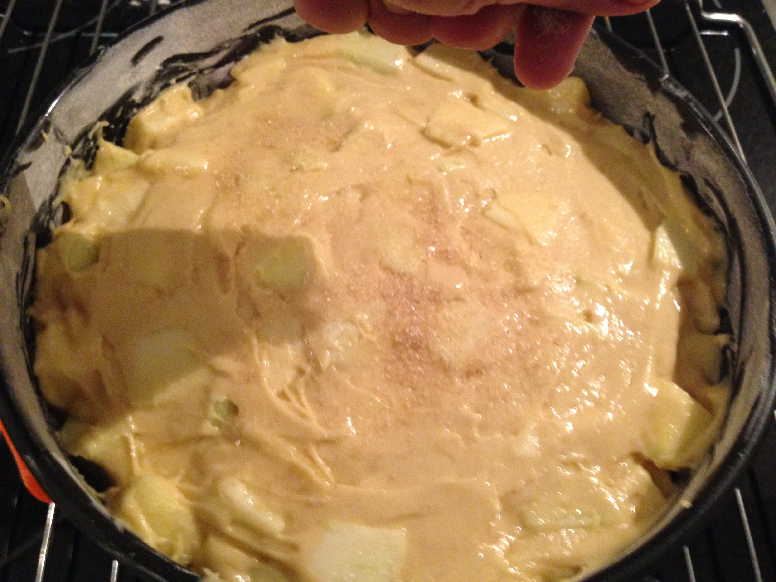 Spolverare la superficie con un po’ di zucchero di canna (in alternativa potrete spolverare con zucchero a velo, al termine della cottura, quando la torta si sarà raffreddata).