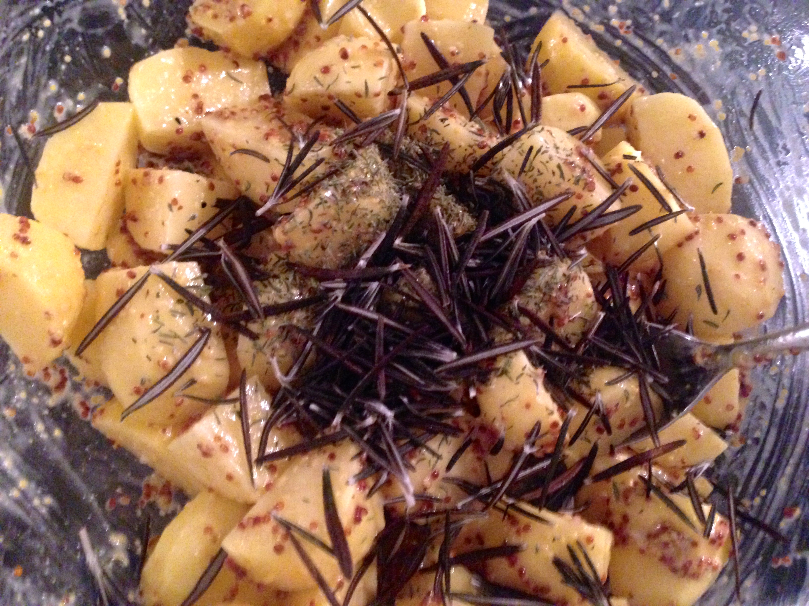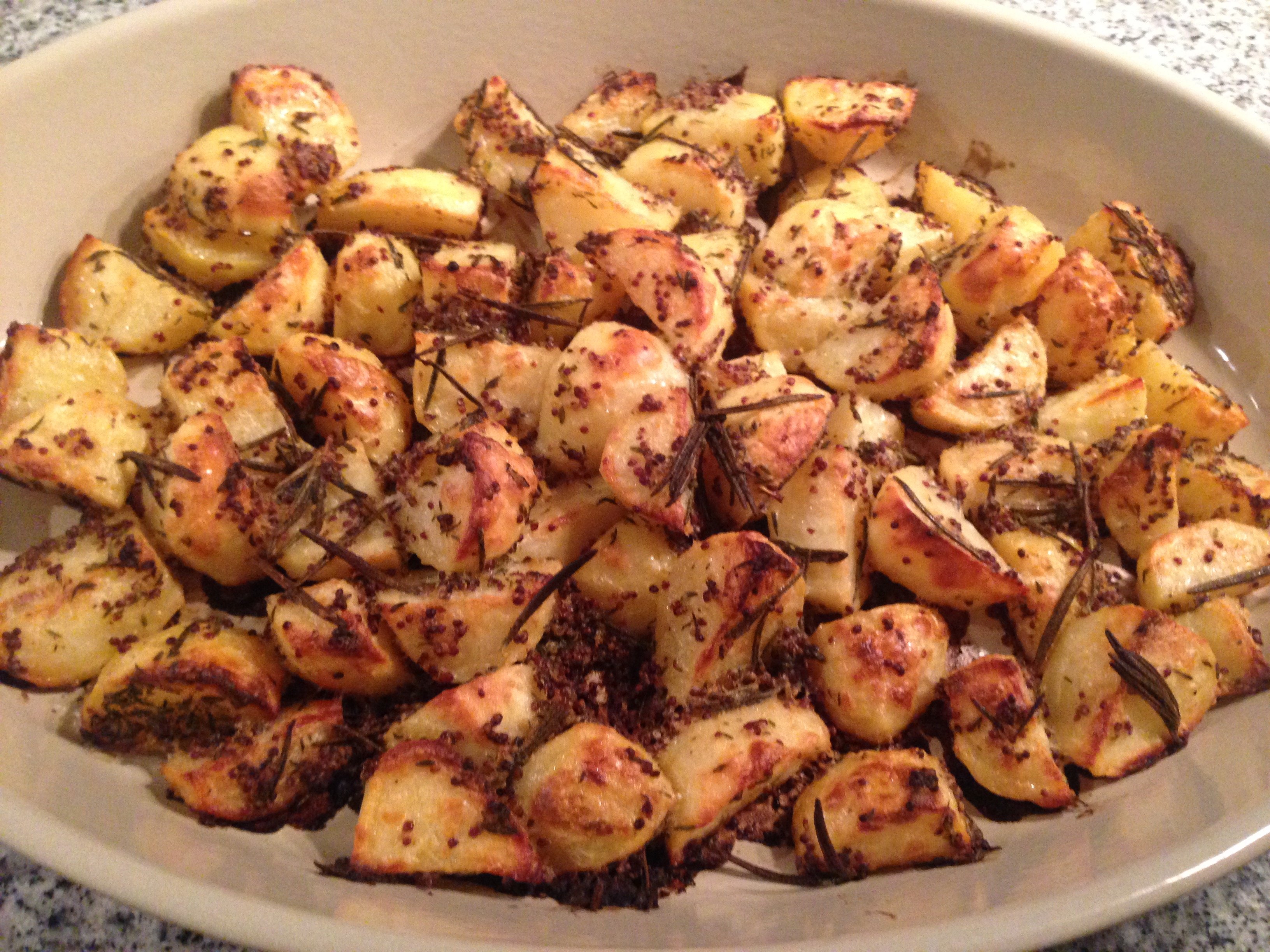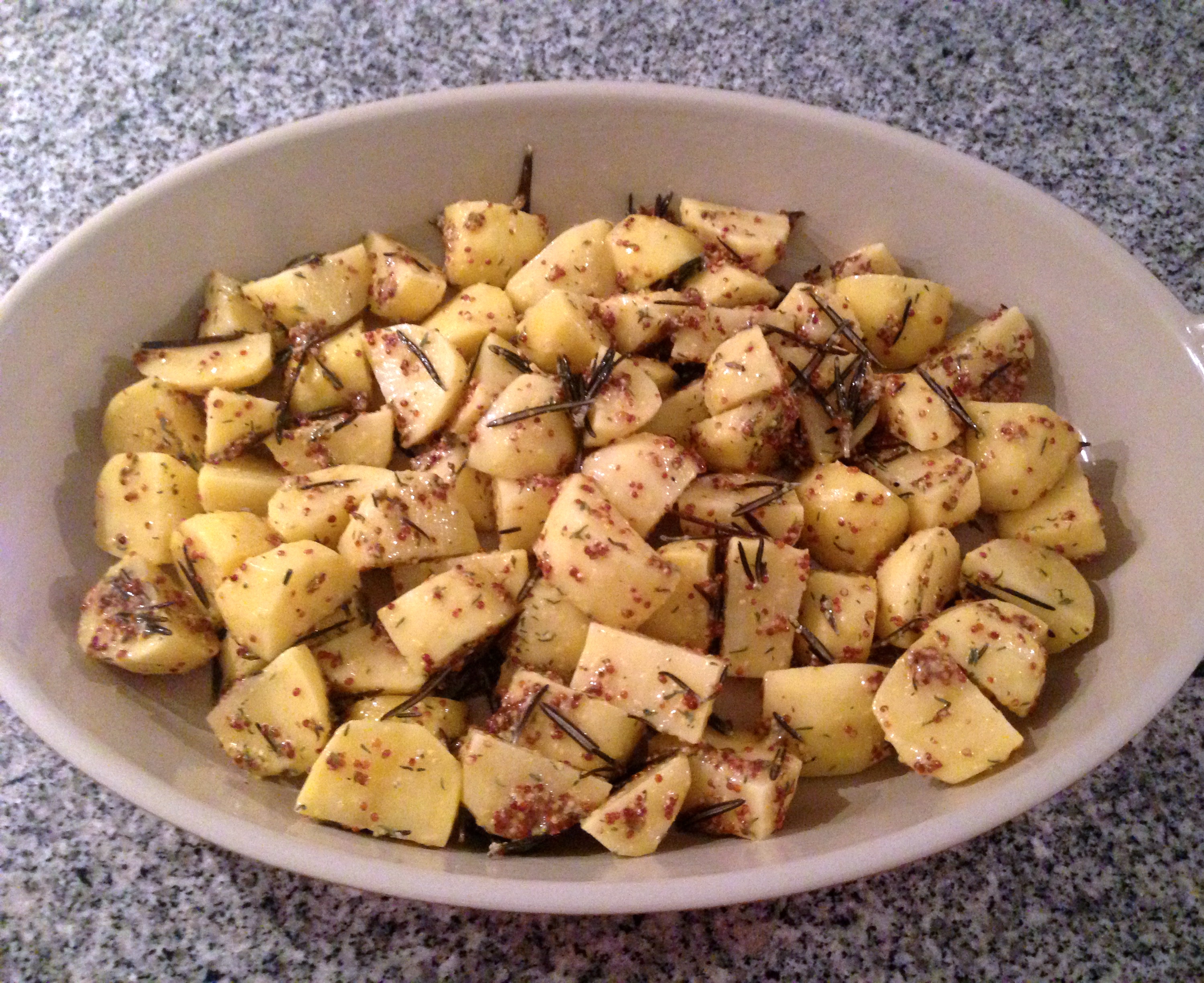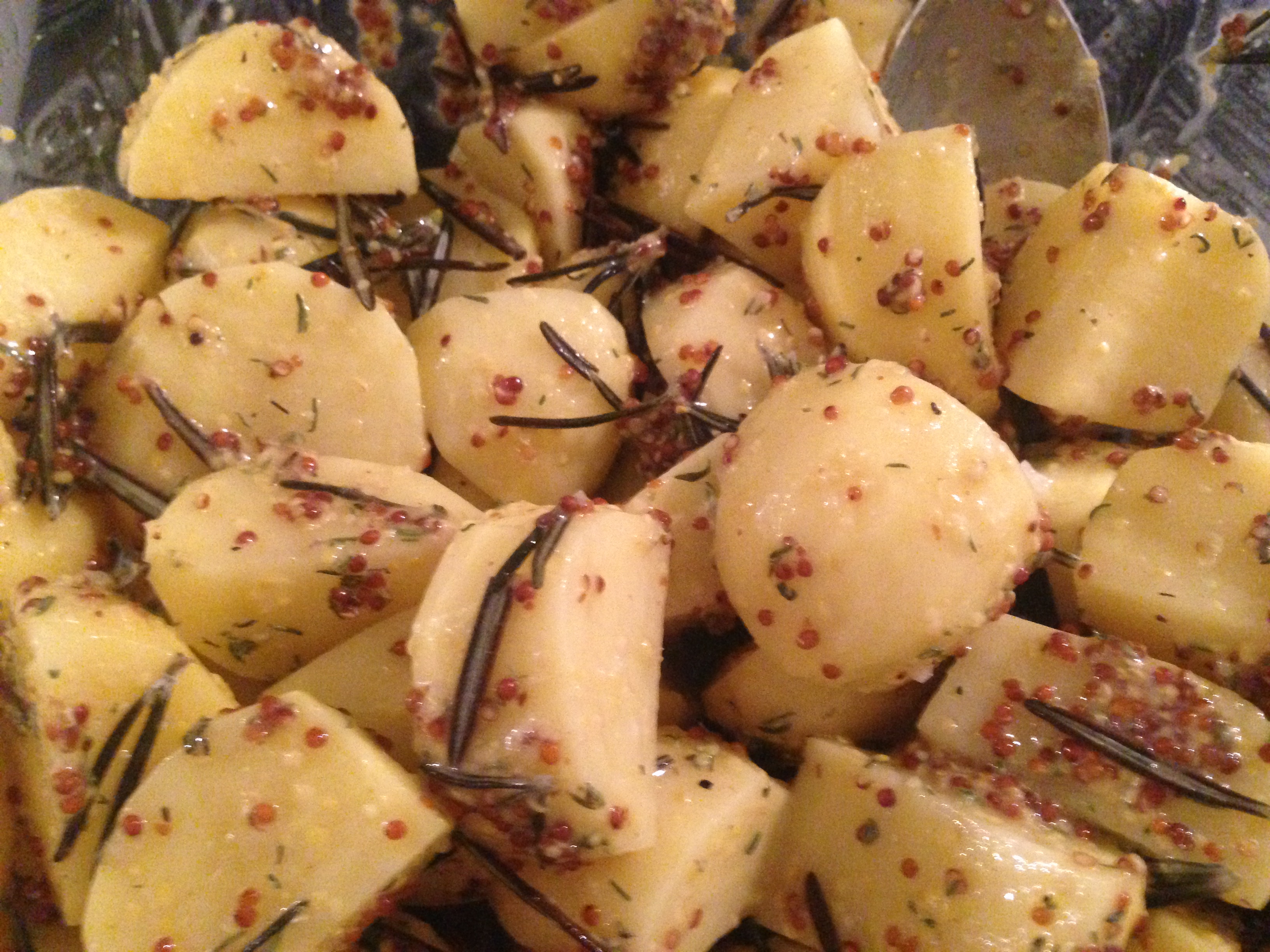 Mettere le patate in una ciotola e aggiungere la senape in grani.