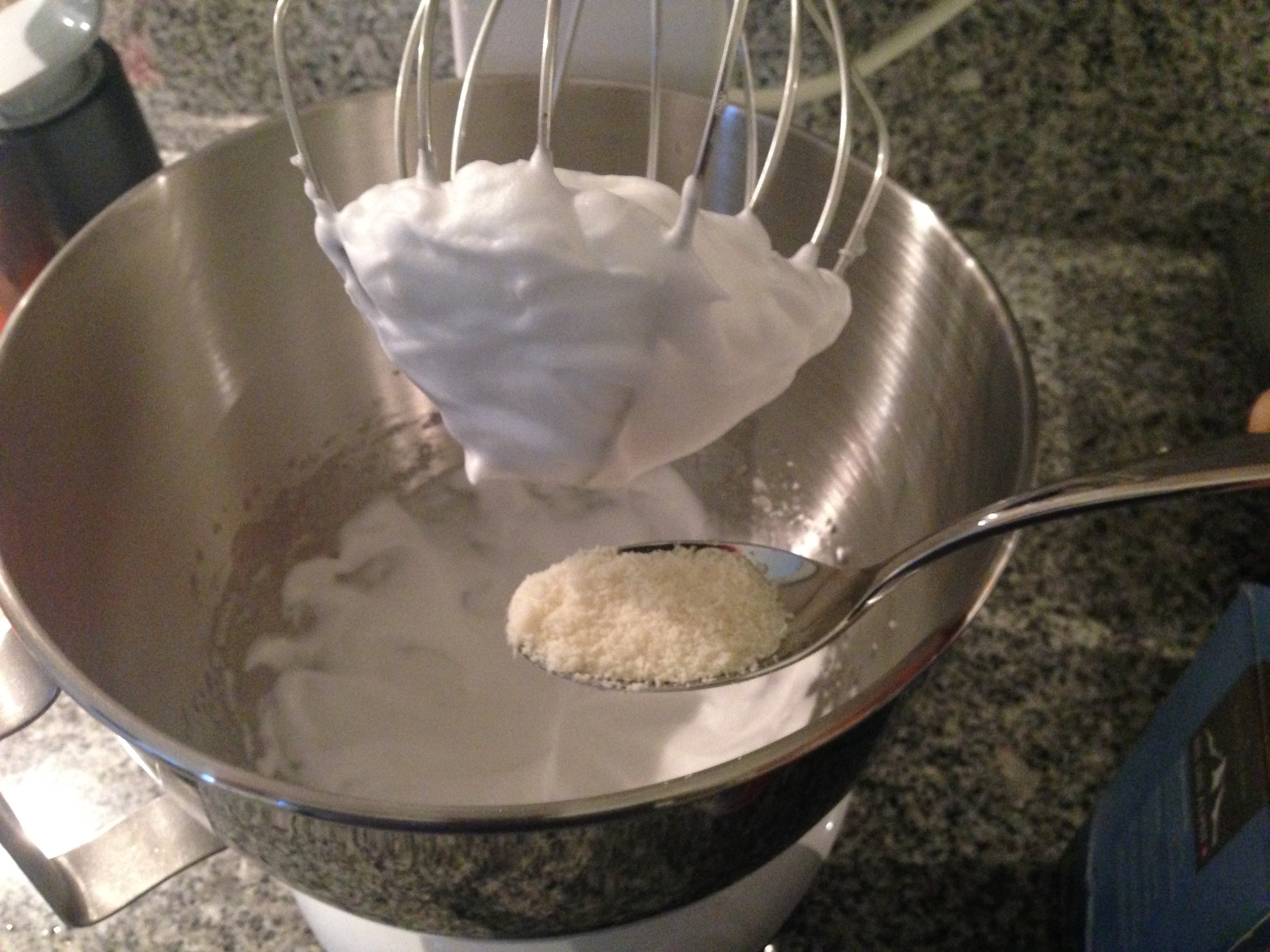 Prima che l’albume sia montato a neve “ferma” aggiungete il formaggio grattugiato e il sale.