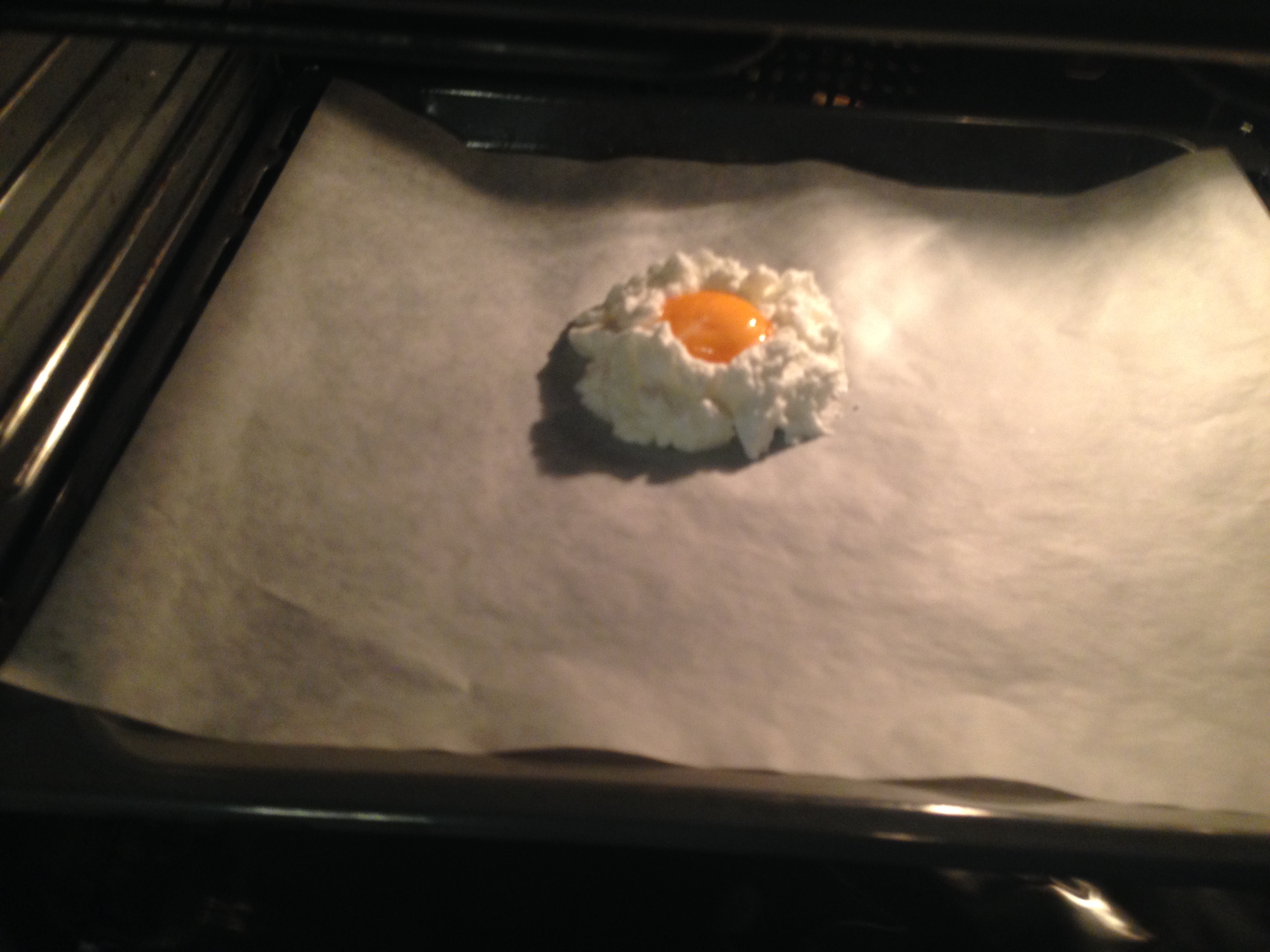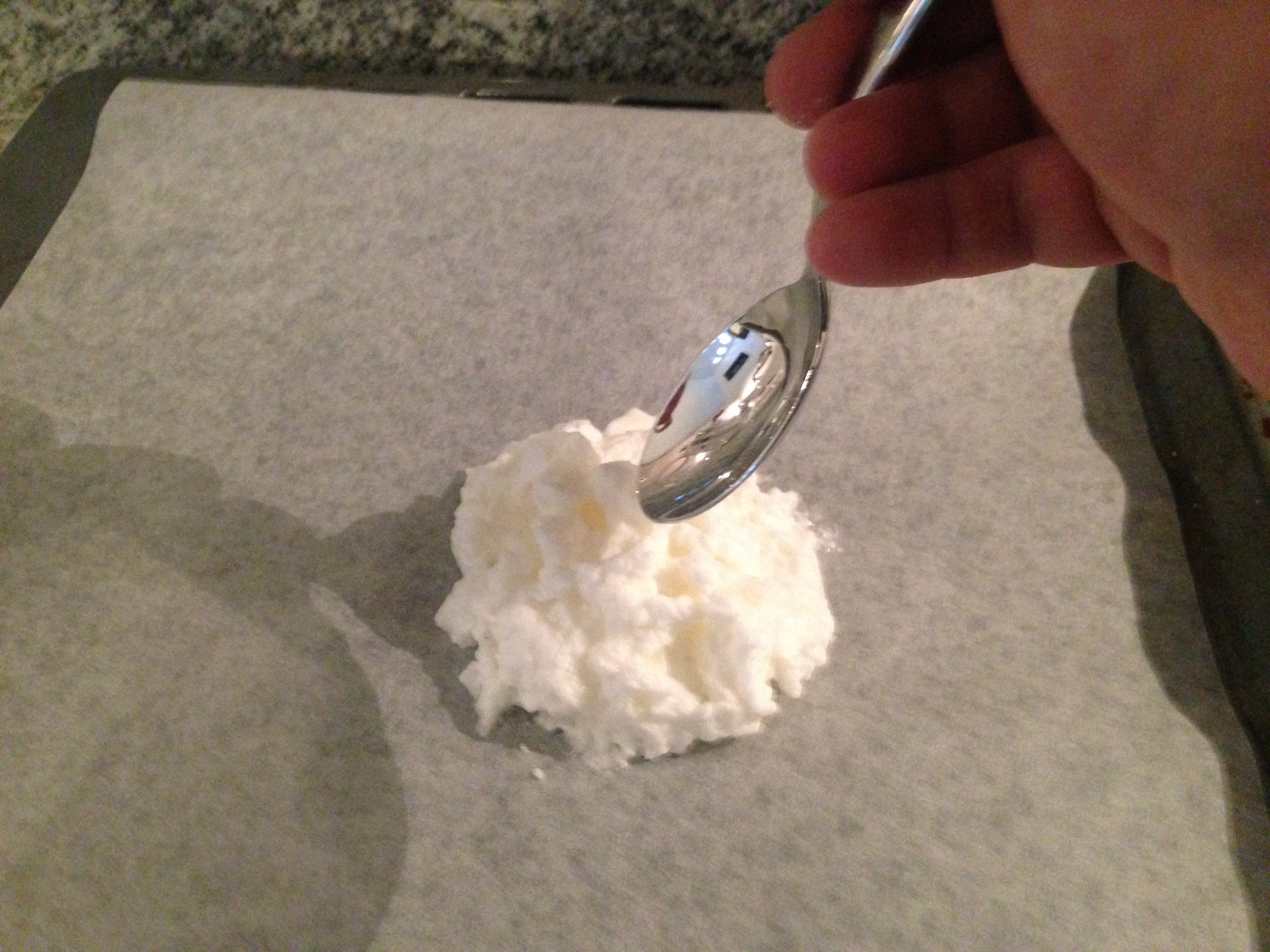 Riponete l’albume su una teglia ricoperta di carta da forno, andando a formare una “nuvoletta”.