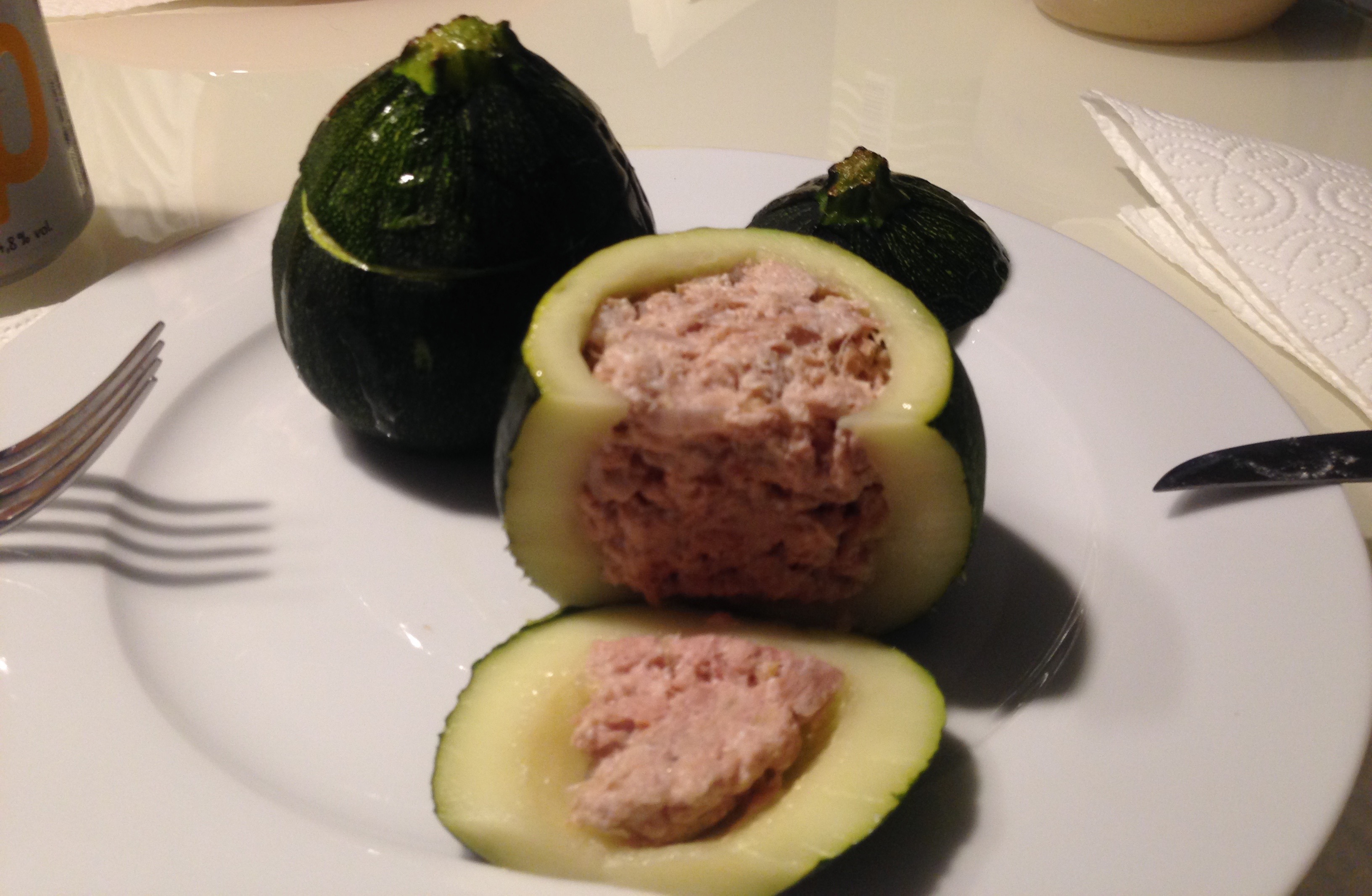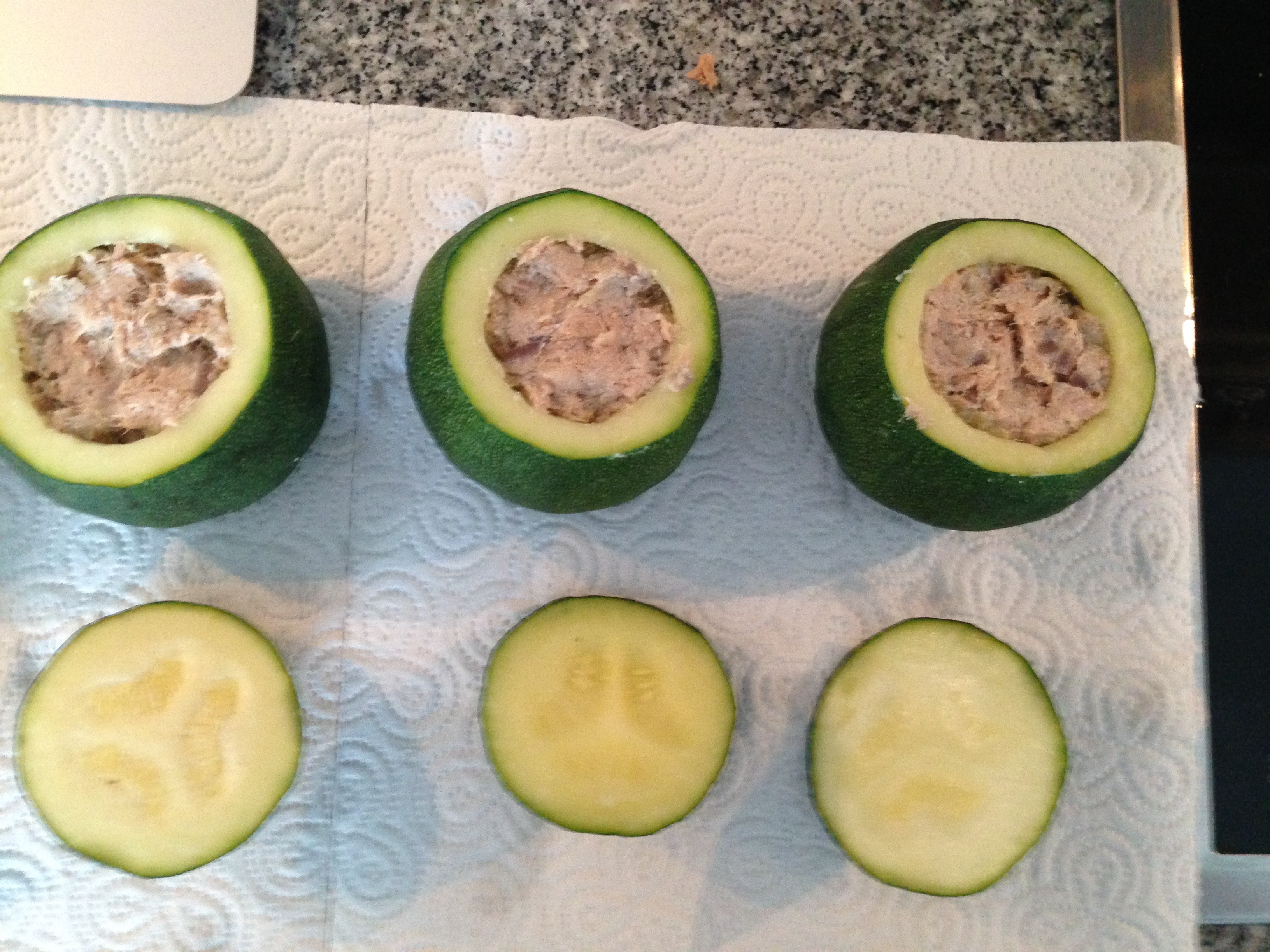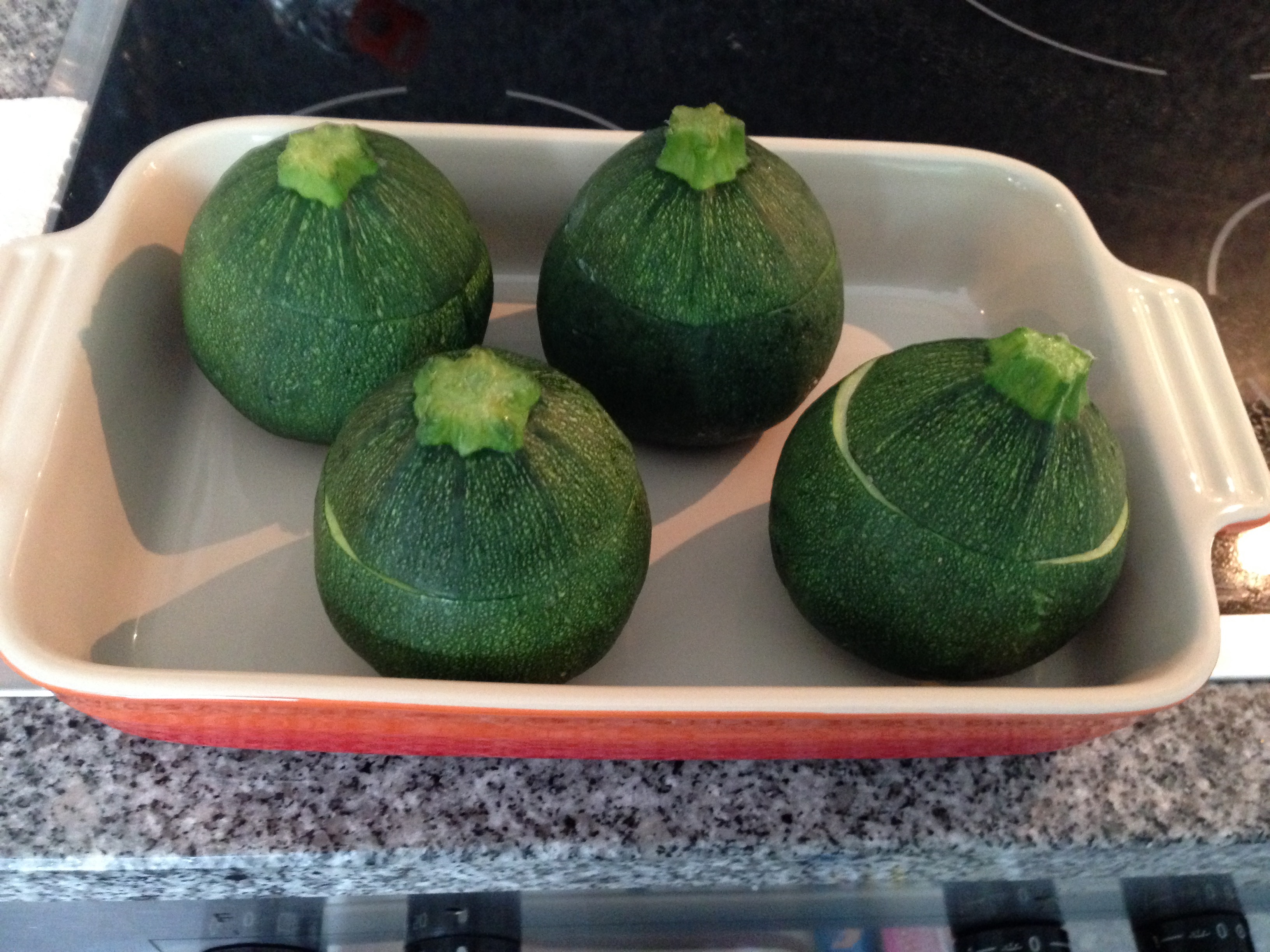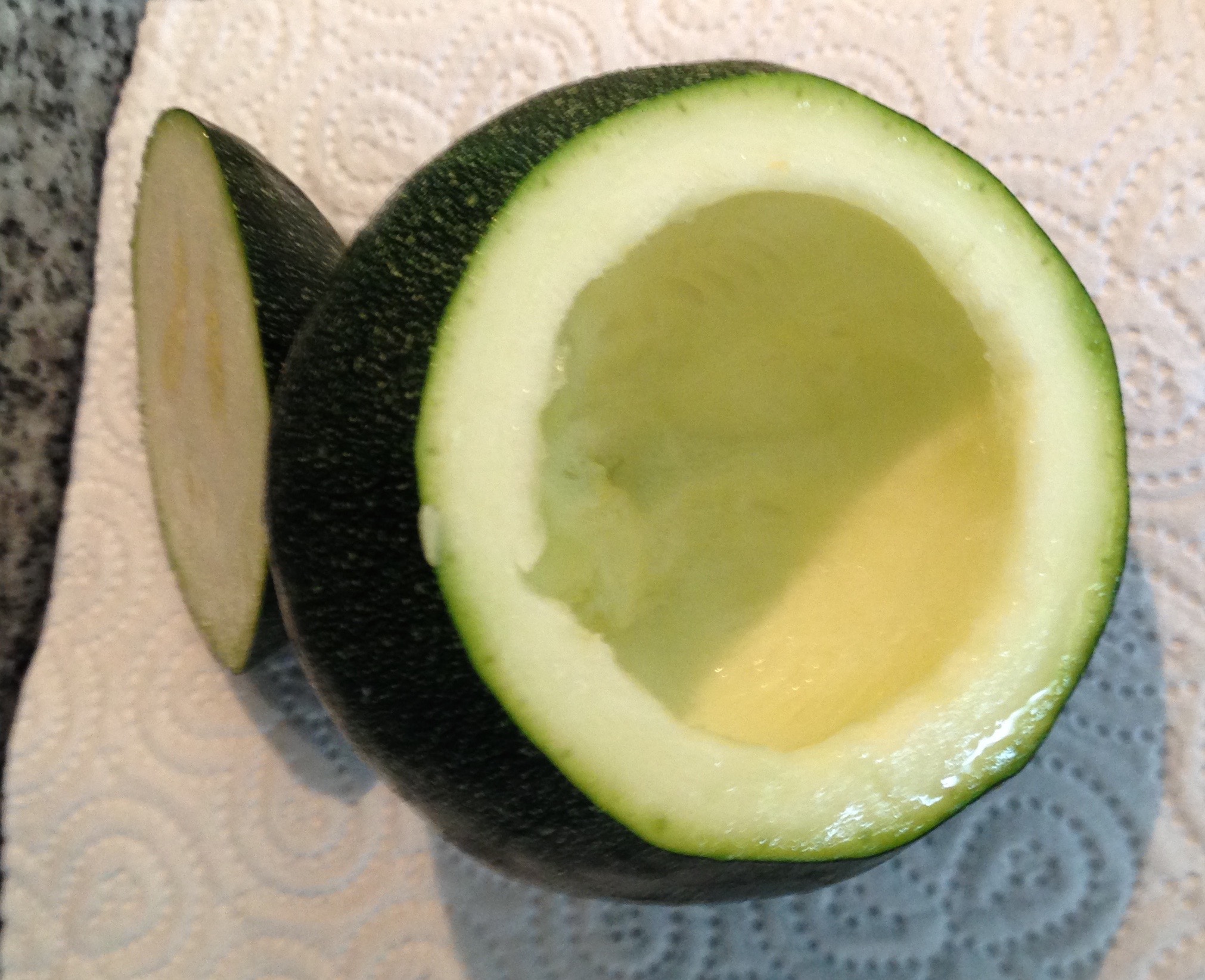 Mettere il ripieno ottenuto all’interno delle zucchine e ricoprirle con la propria calotta.