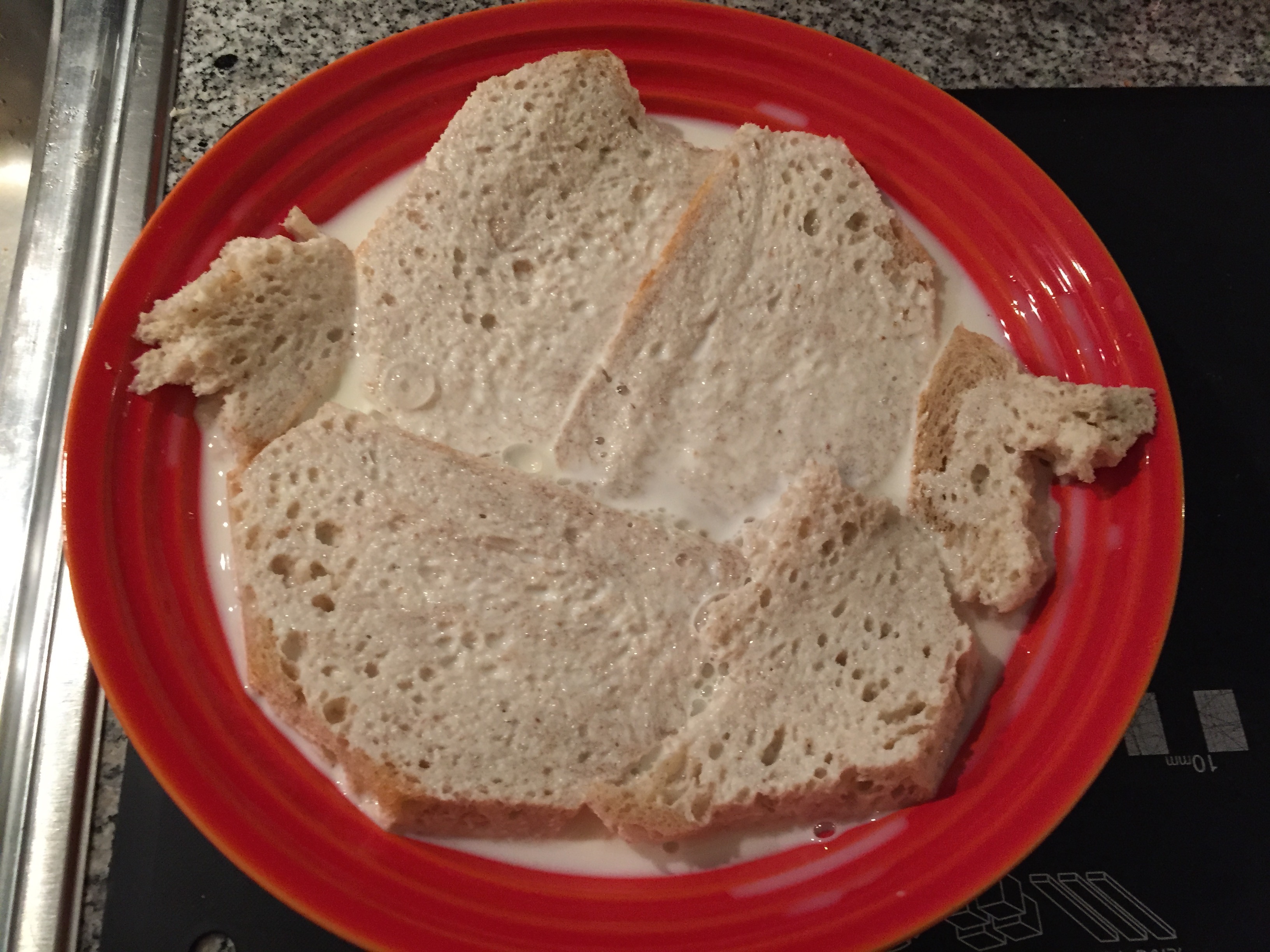 Lasciare a mollo per 10 minuti il pane nel latte.