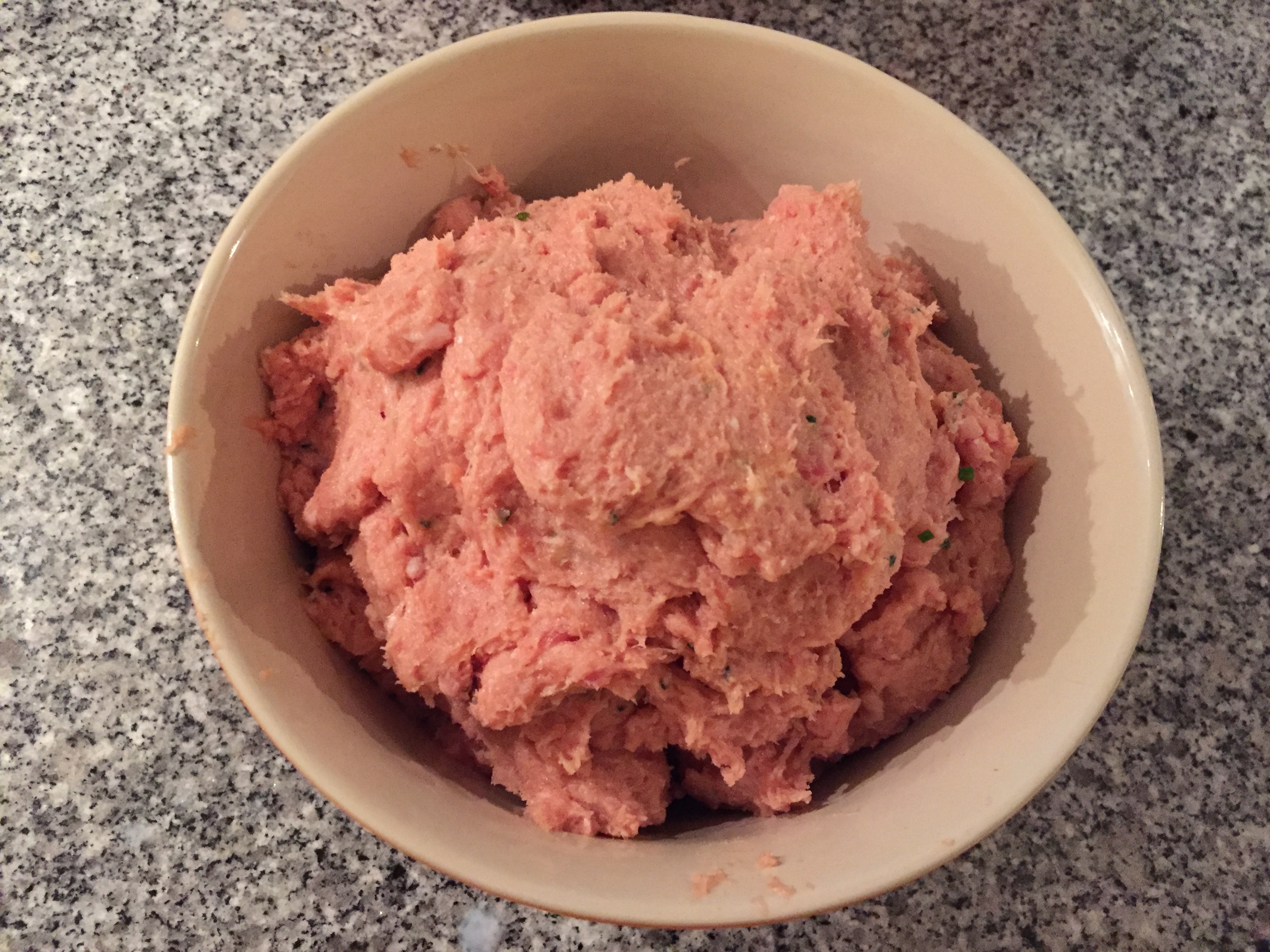 In una ciotola rimestare la carne macinata, i tuorli, 4 cucchiai di marsala, l’erba cipollina, le acciughe tritate finemente, una manciata di formaggio grattugiato, sale, pepe e le fette di pane che nel frattempo avrete strizzato.