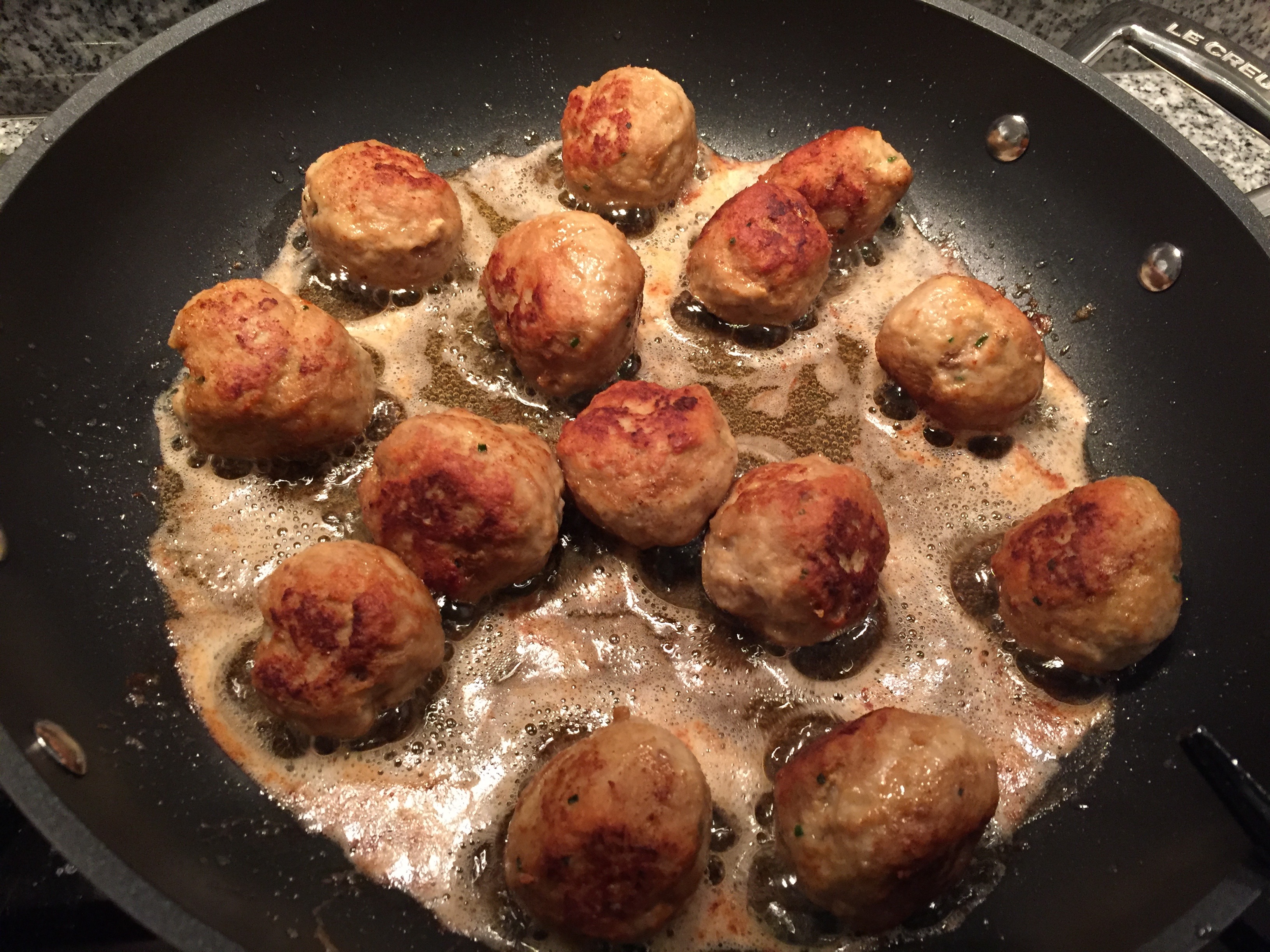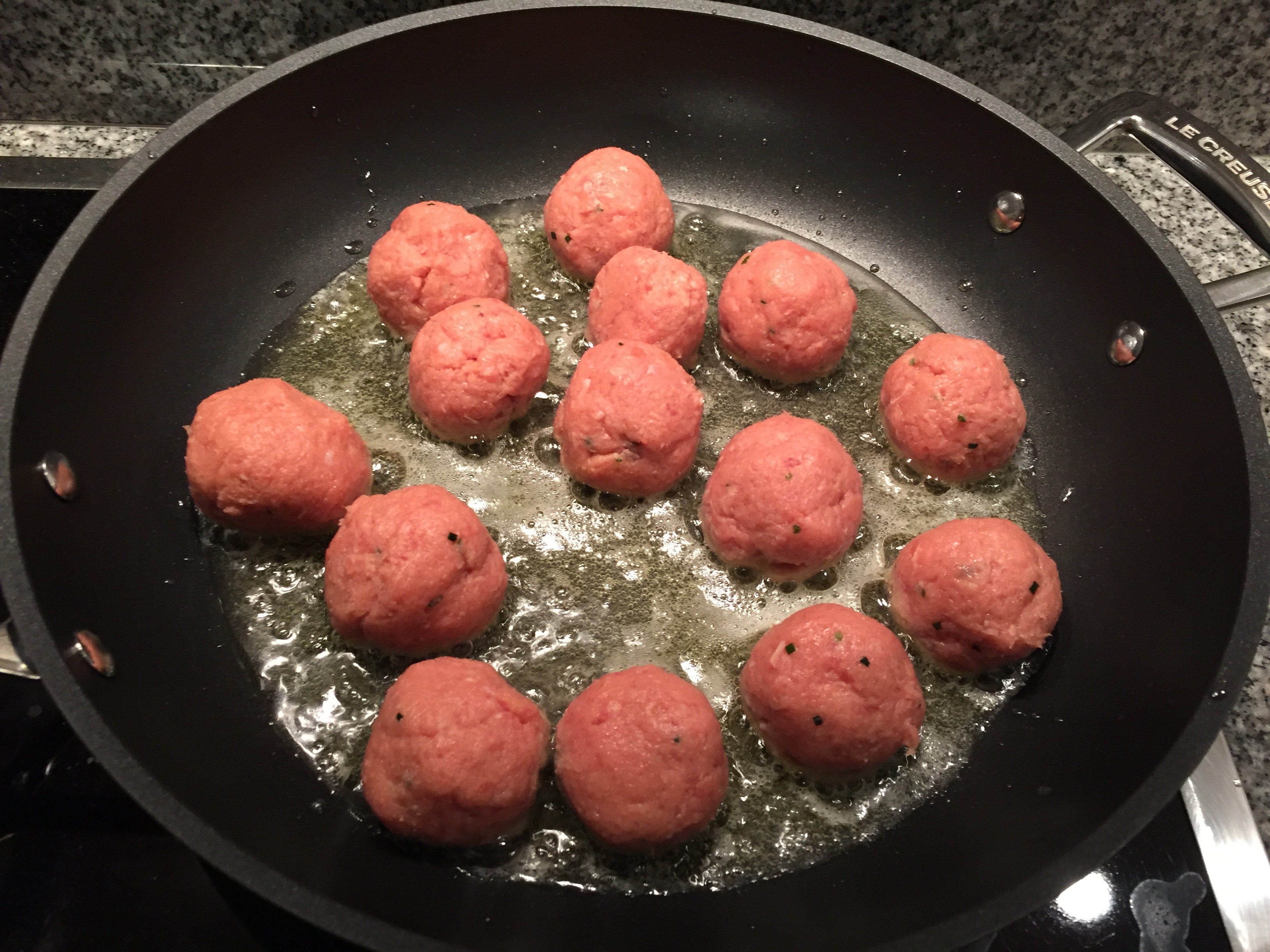 Scaldare 3 cucchiai di olio in una padella e rosolarvi le polpettine per 5 minuti circa.