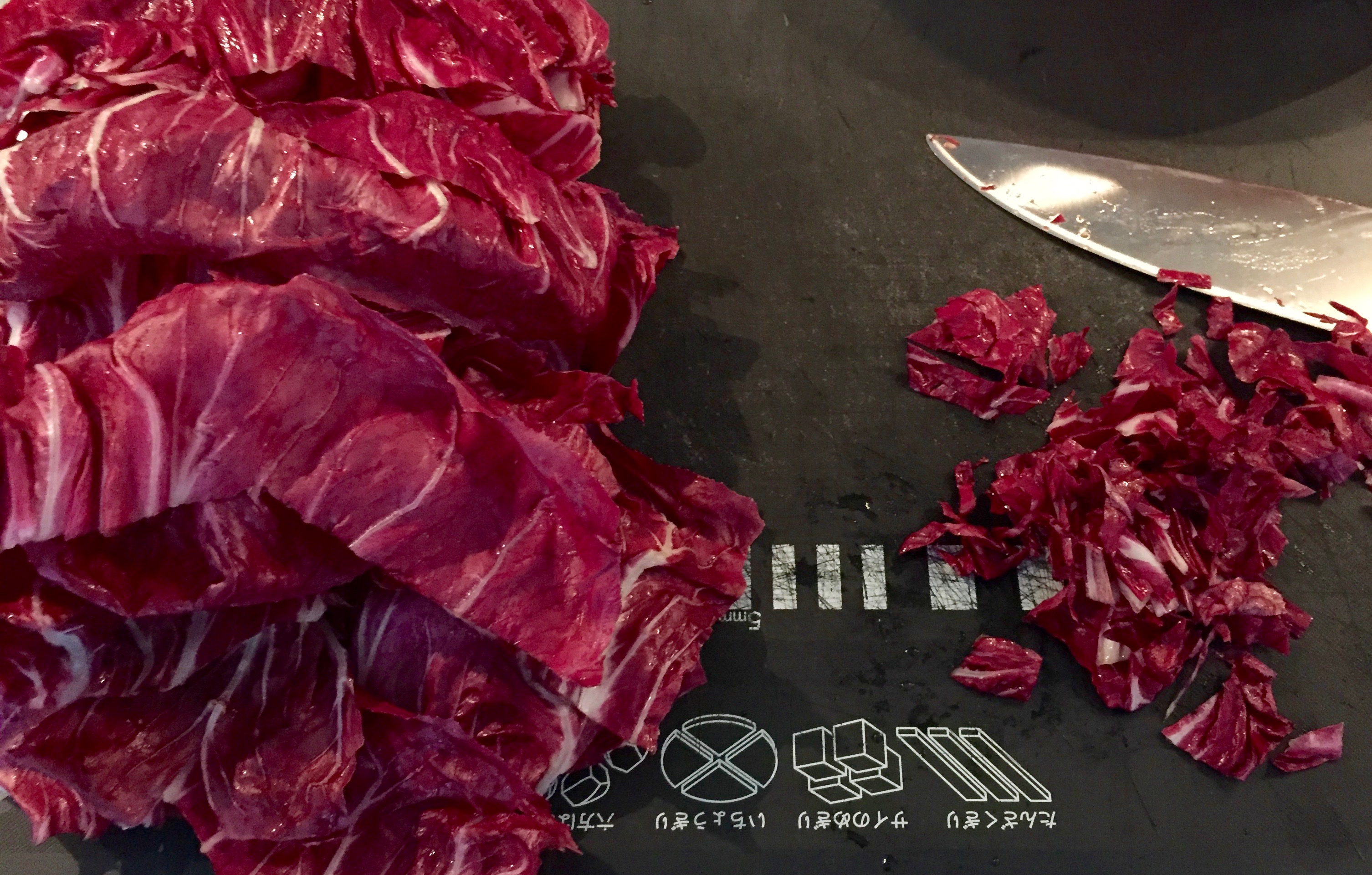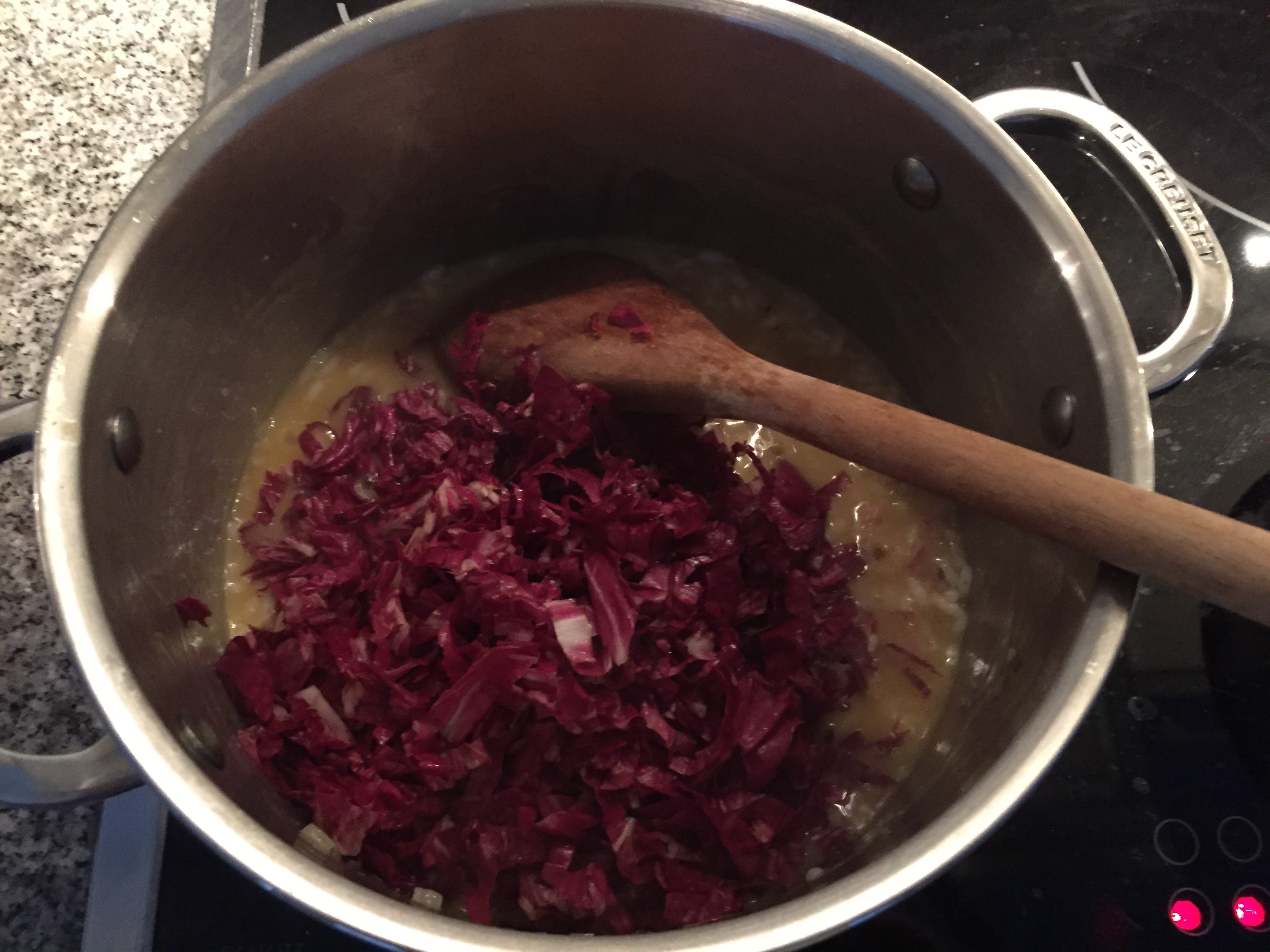 A 5 minuti dalla fine della cottura aggiungere il cicorino tritato.
