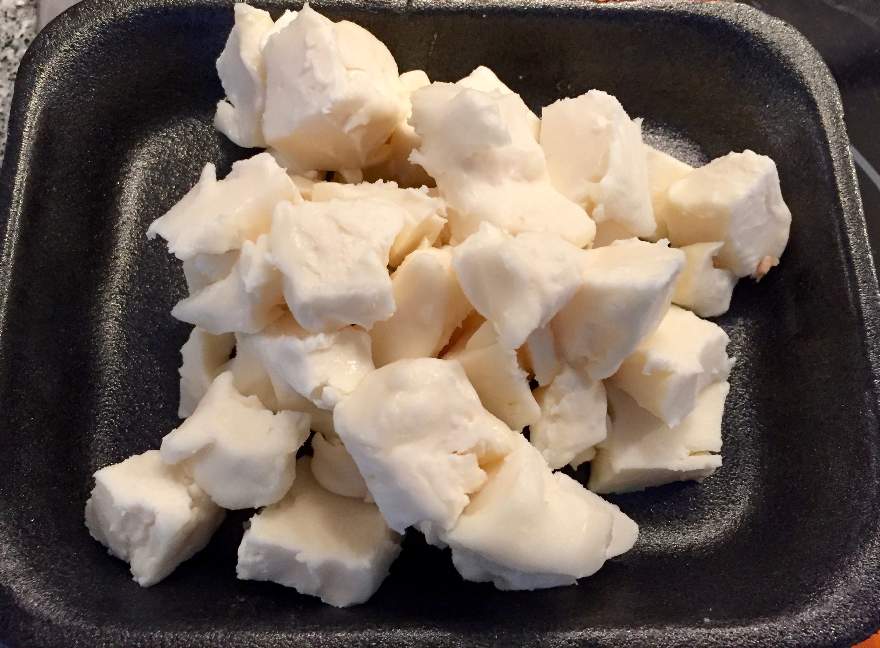 Tagliare il taleggio in tocchetti. Come detto 100 gr. sono più che sufficienti, in base alla vostra “golosità” aumentate pure, senza andare però oltre ai 150 gr…