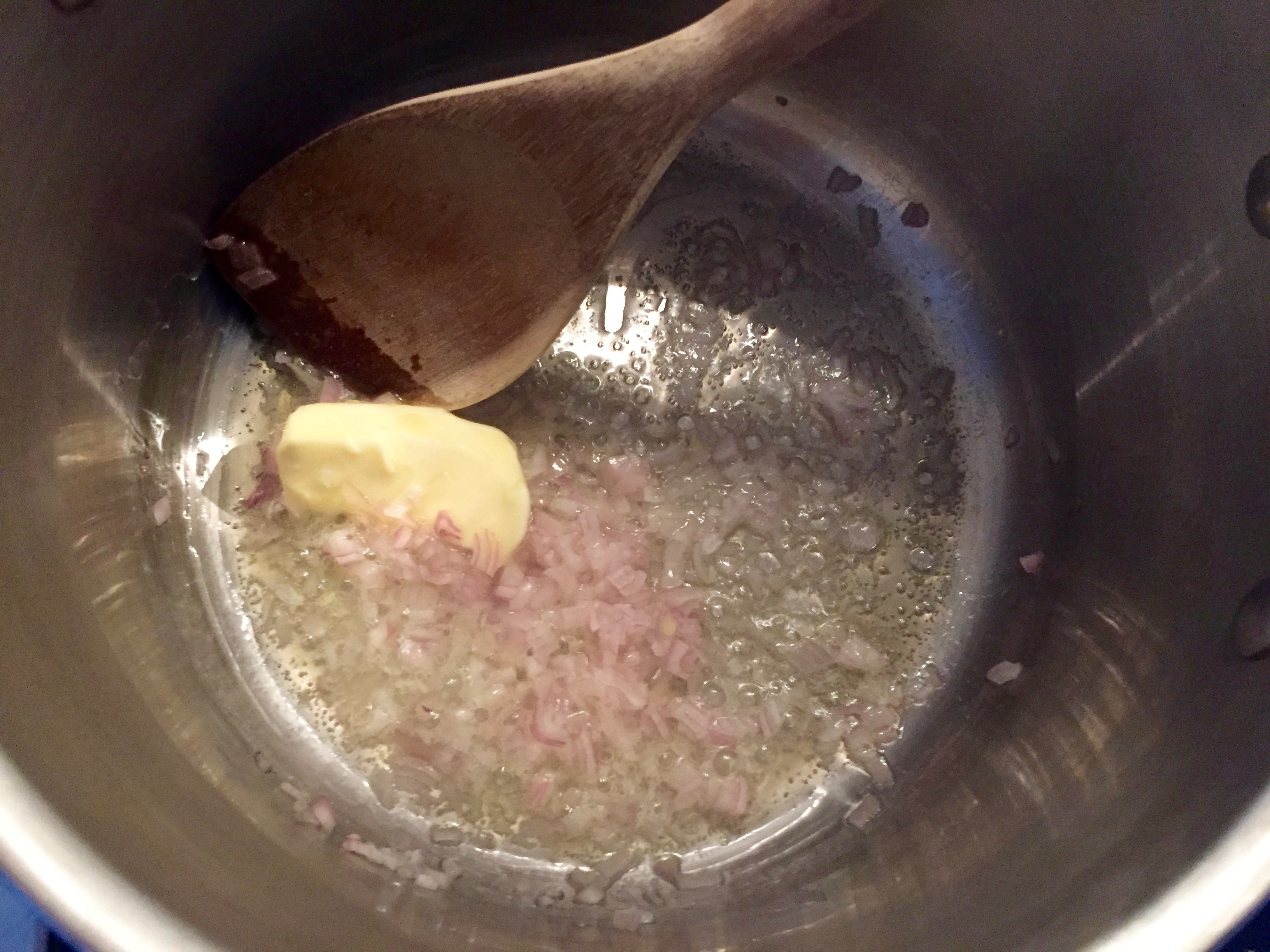 Sciogliete una noce di burro in una pentola, aggiungere lo scalogno e rosolarlo.
