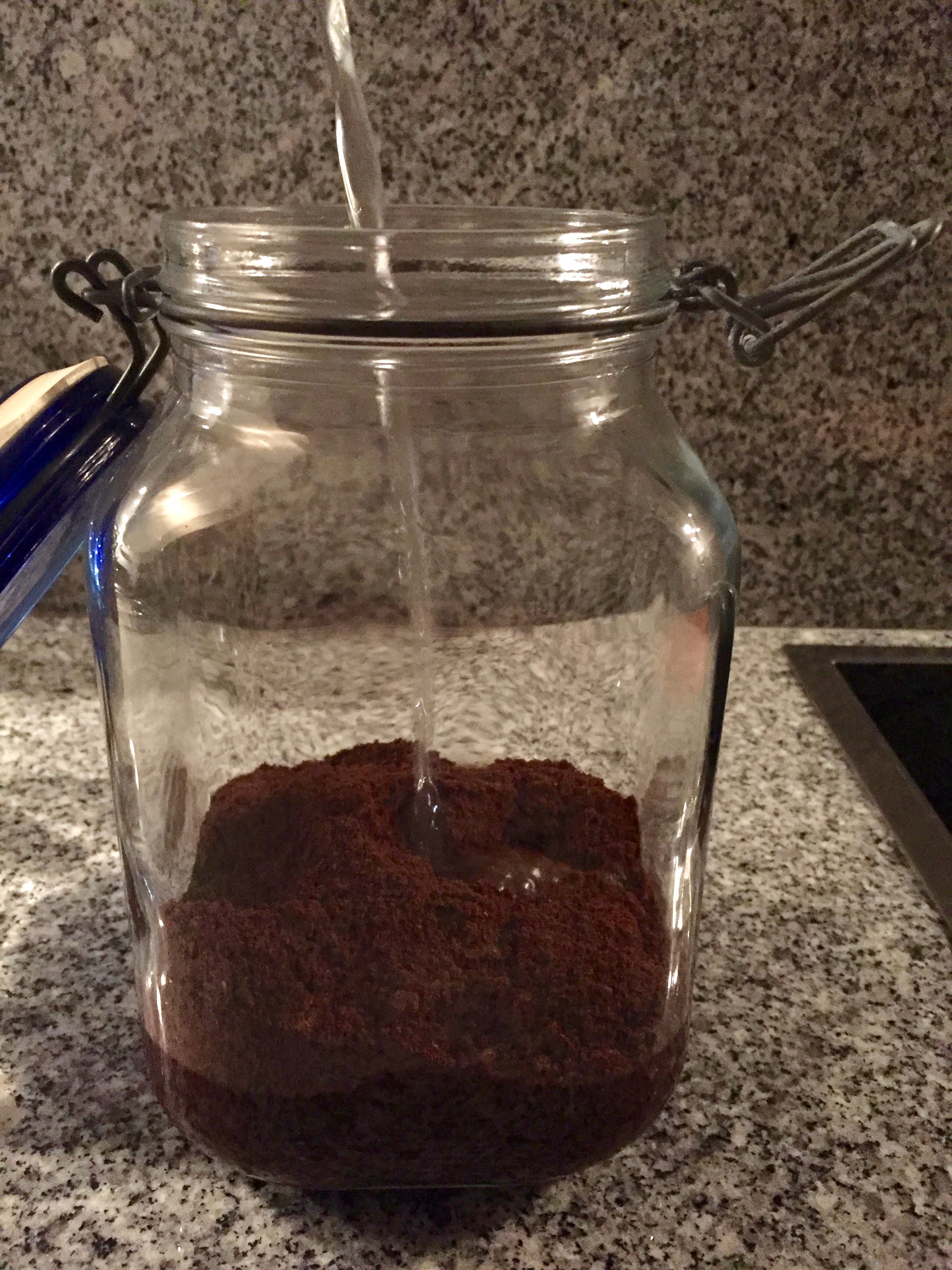 In una vaso mettere 250 gr di caffè in polvere con 1.6 l di acqua fredda.
