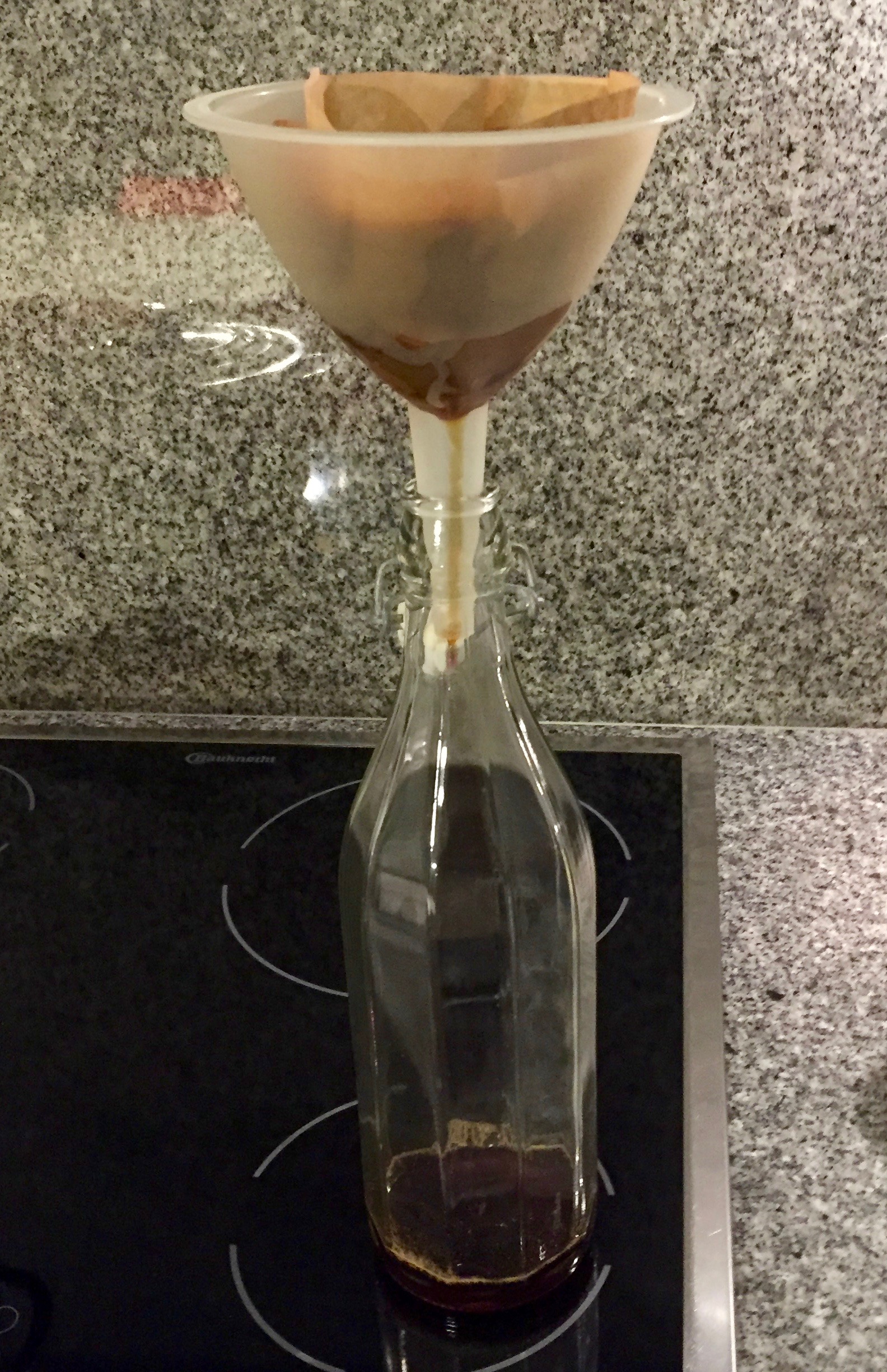 A questo punto passare il liquido attraverso un filtro da caffè, in modo da eliminare completamente tutti i sedimenti.