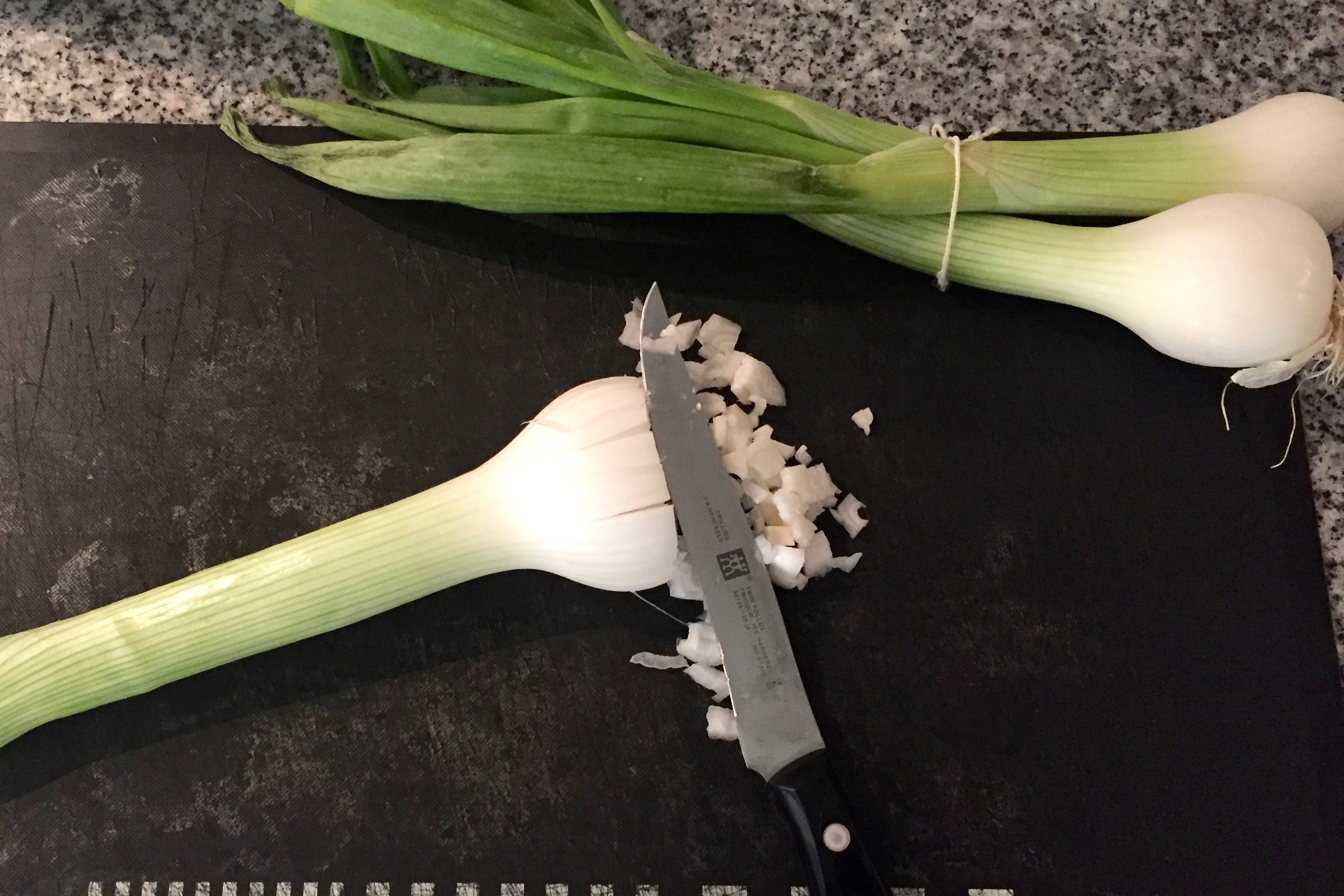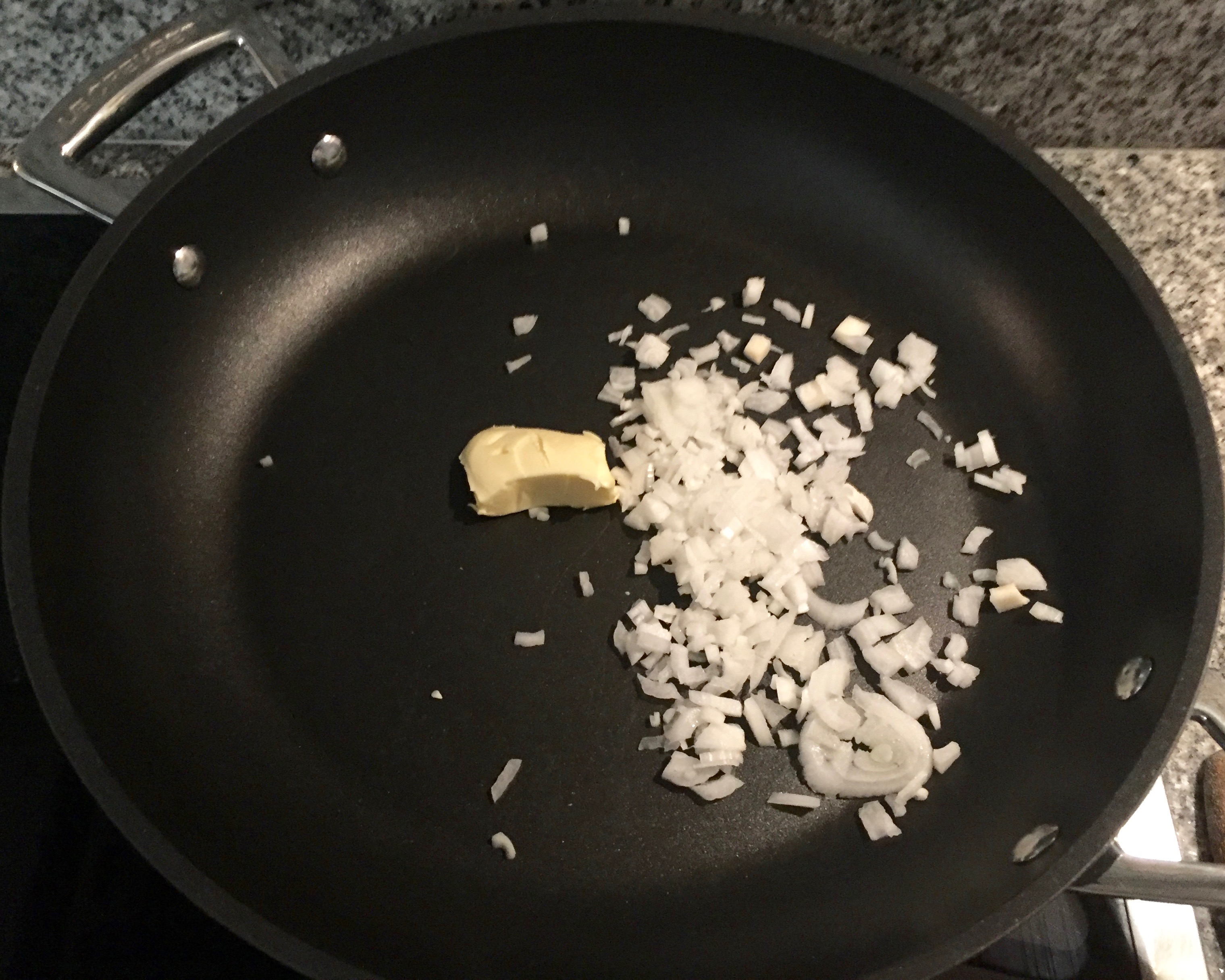 In una padella sciogliere una noce di burro e rosolarvi il cipollotto.