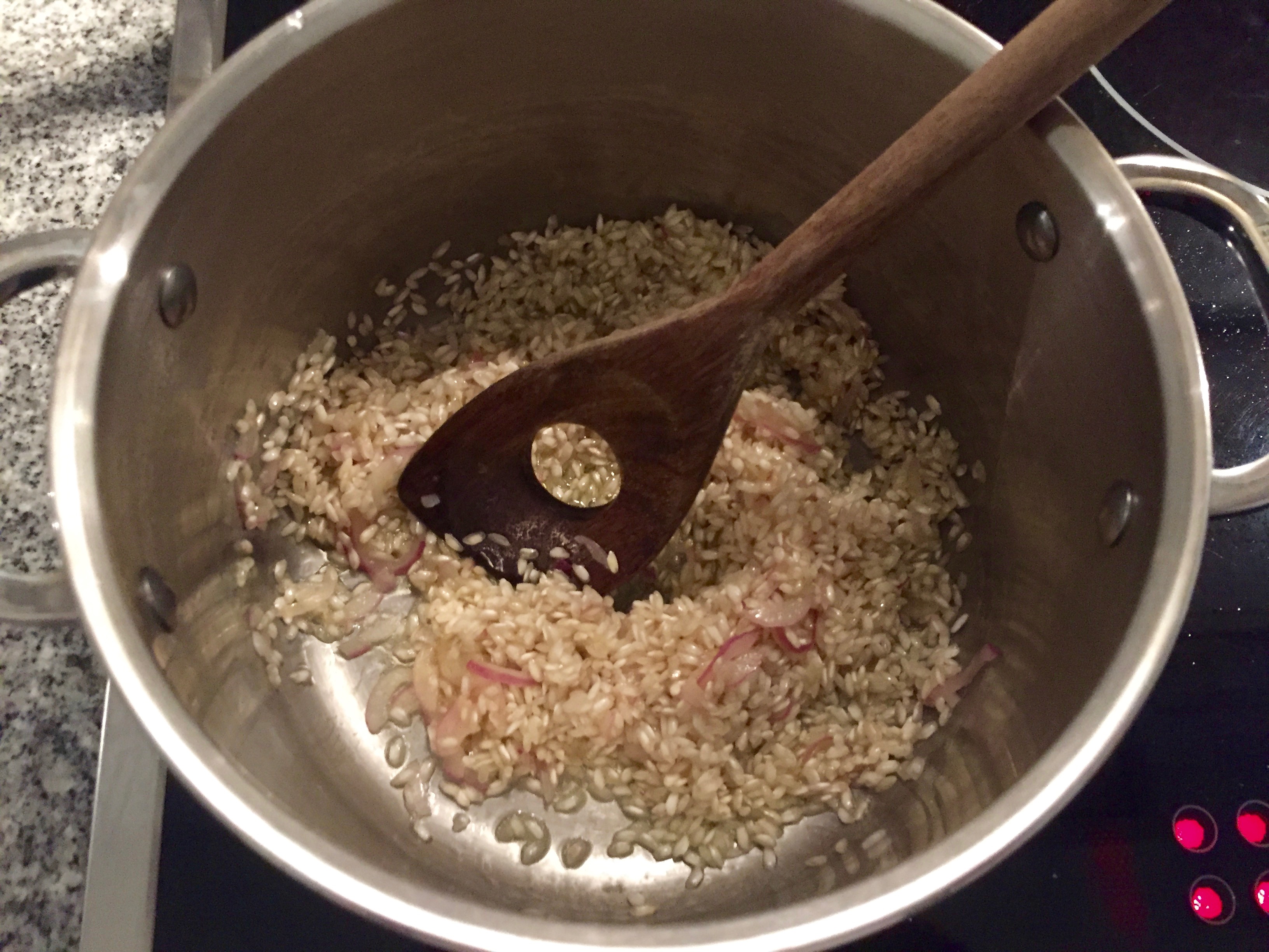 Continuare la cottura, quando necessario, aggiungere un mestolo di brodo alla volta.