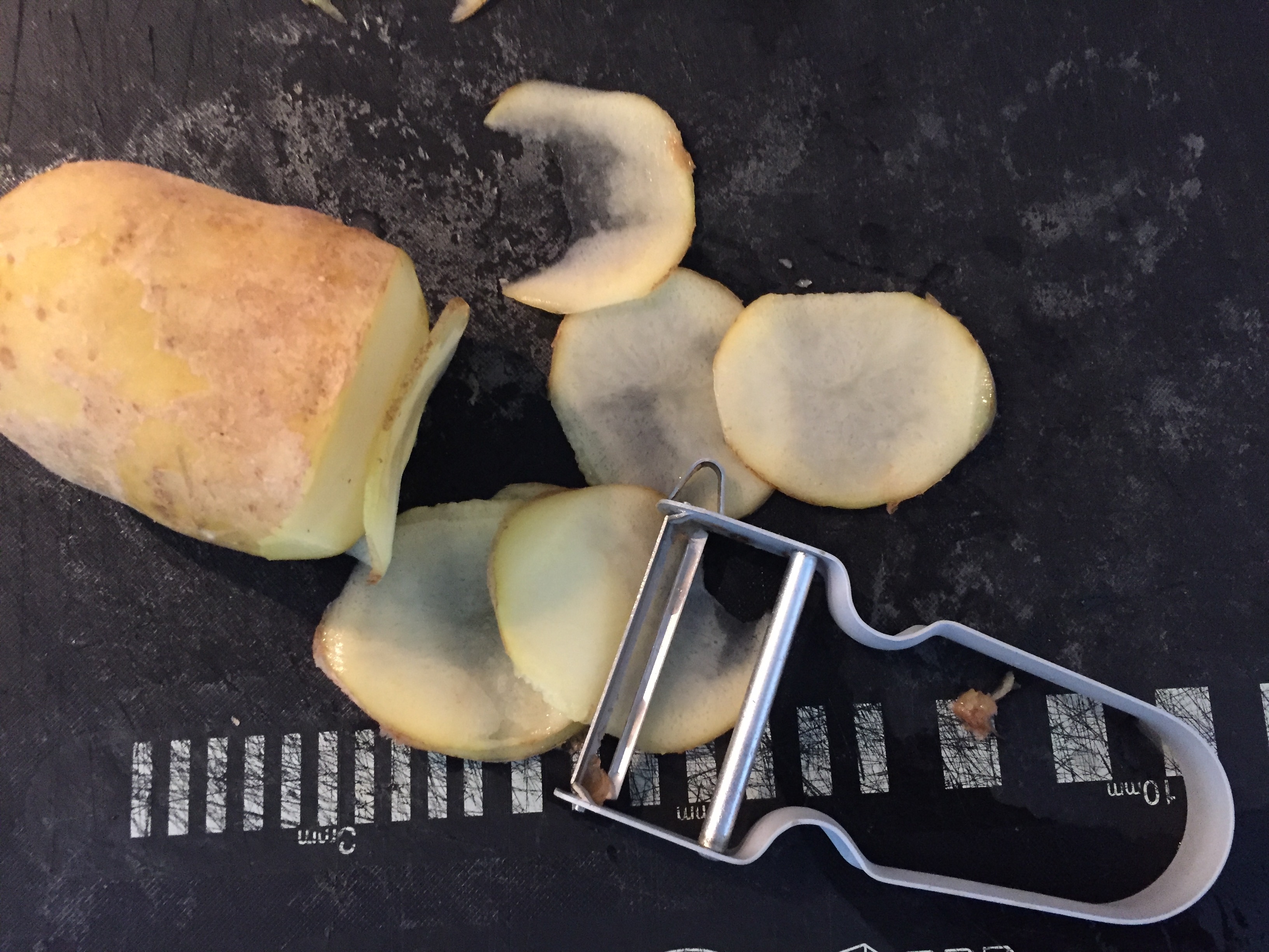 Tagliatele a fettine sottilissime utilizzando un pelapatate.