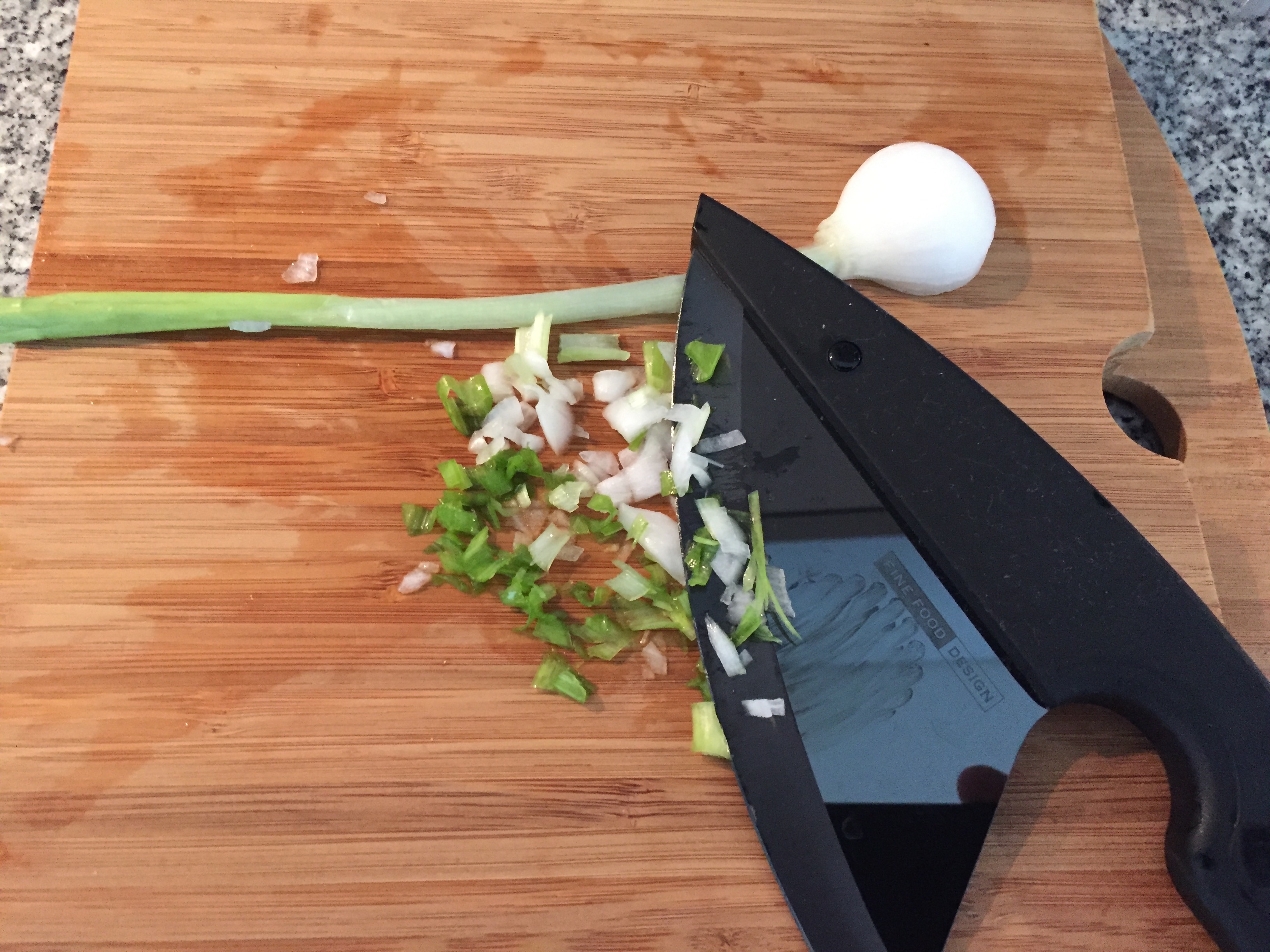 Tritare il cipollotto (sia la parte bianca che quella verde).