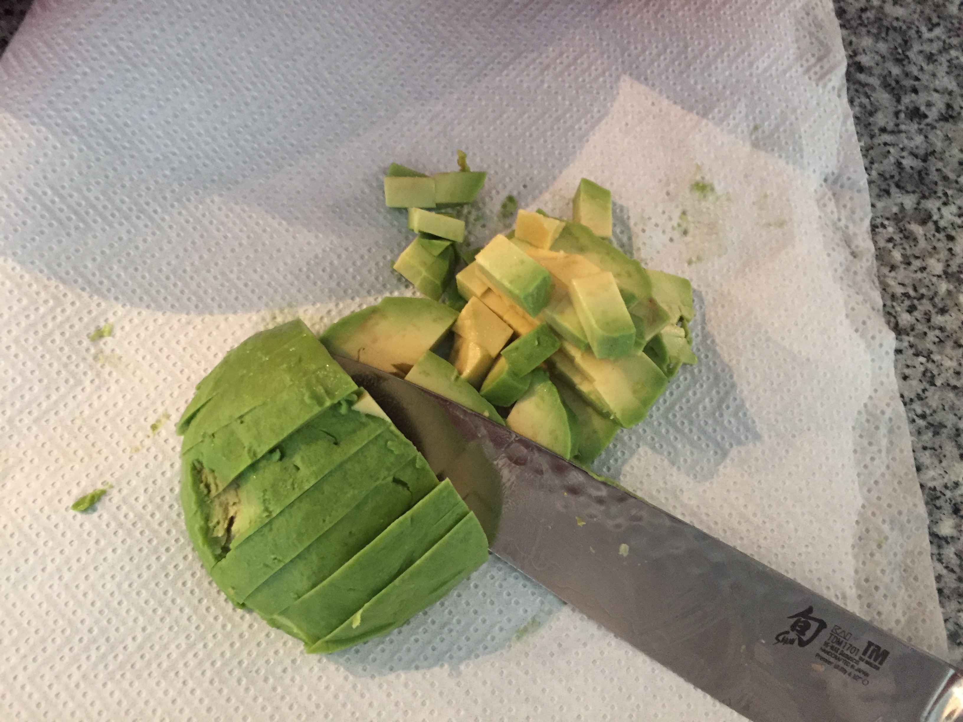 Tagliare l’avocado a cubetti di 0.5 cm circa.