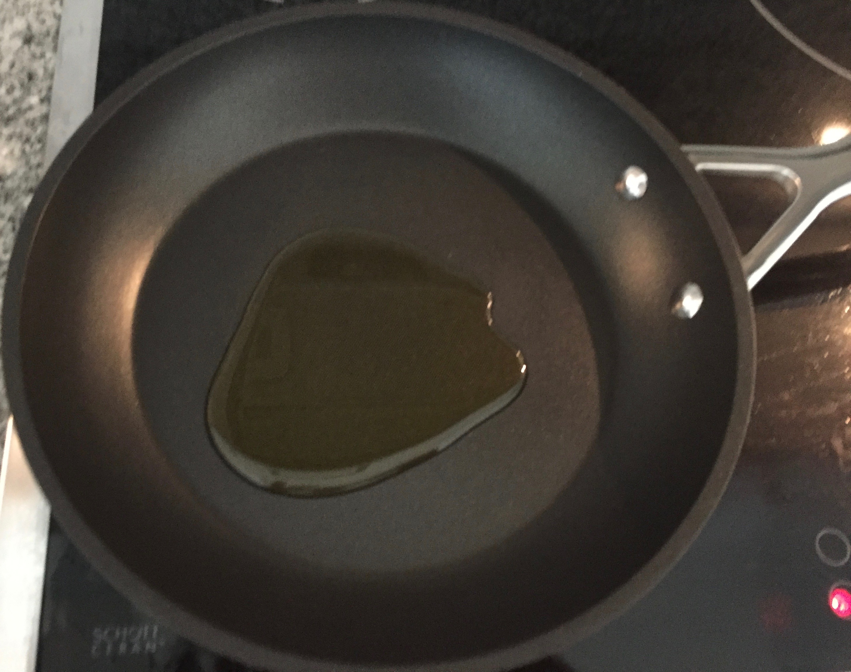 In una padella antiaderente versare 2 cucchiai d’olio.