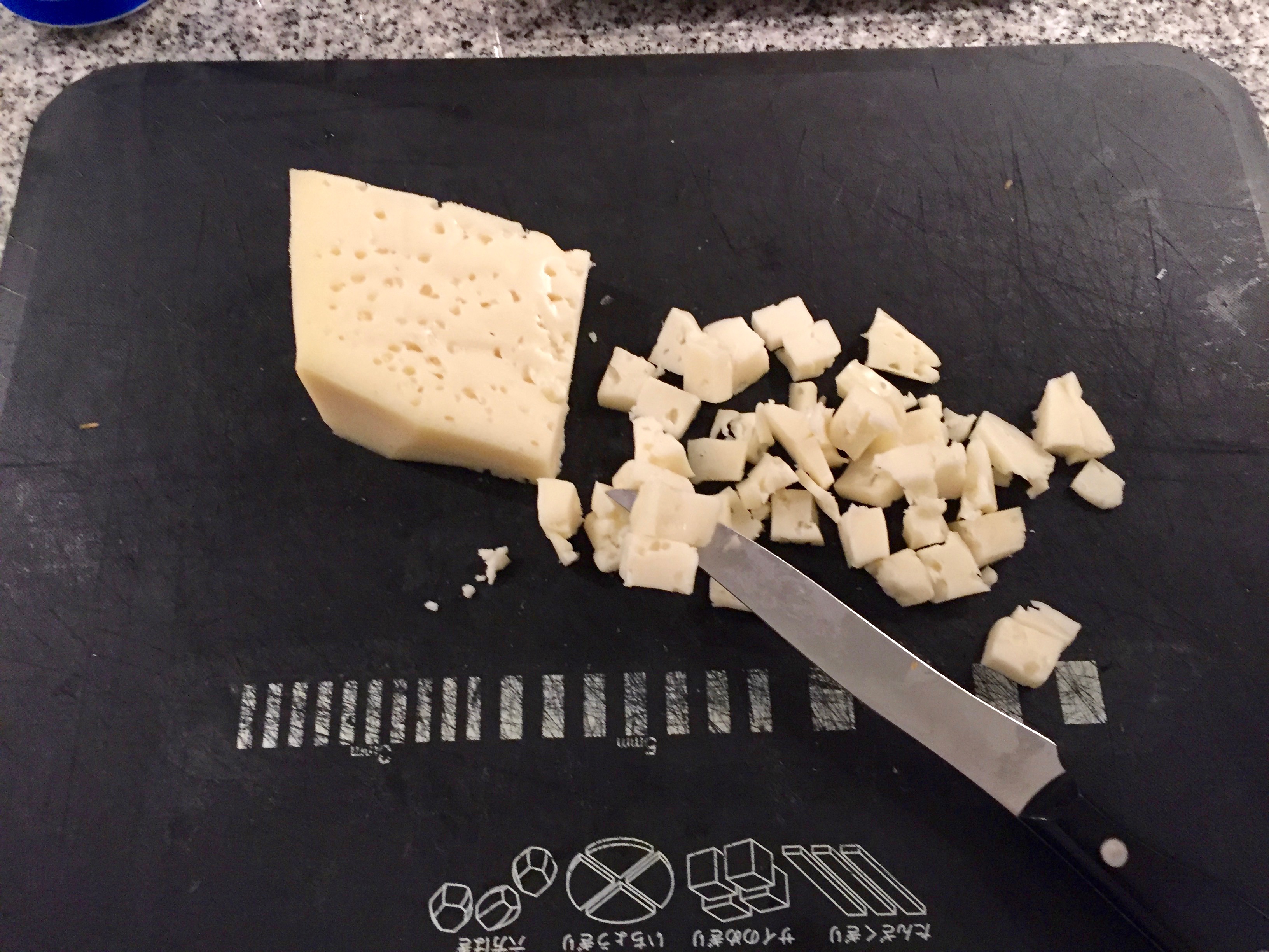 Tagliare la zucca in piccoli cubetti (inferiori a 1 cm di lato).