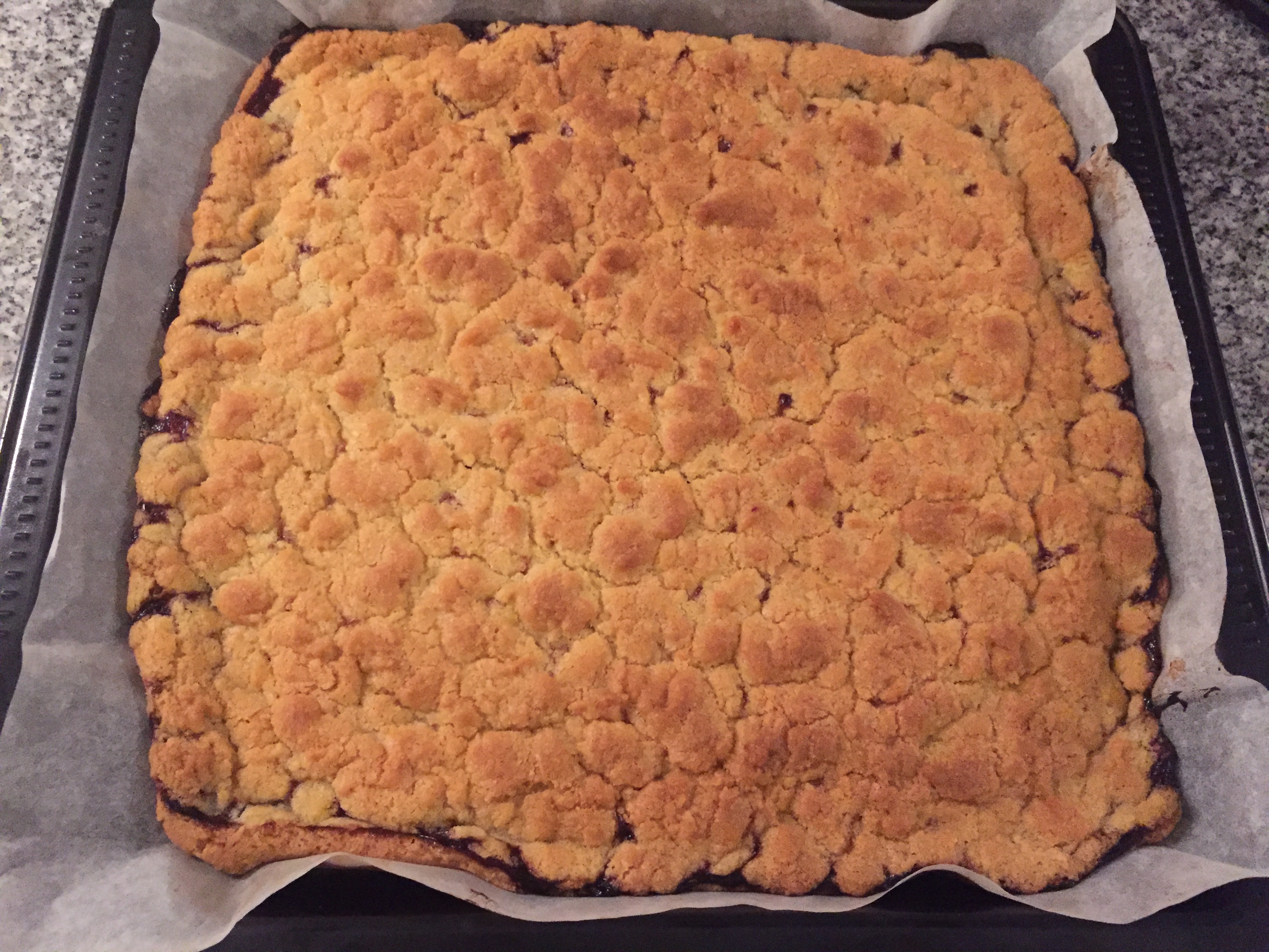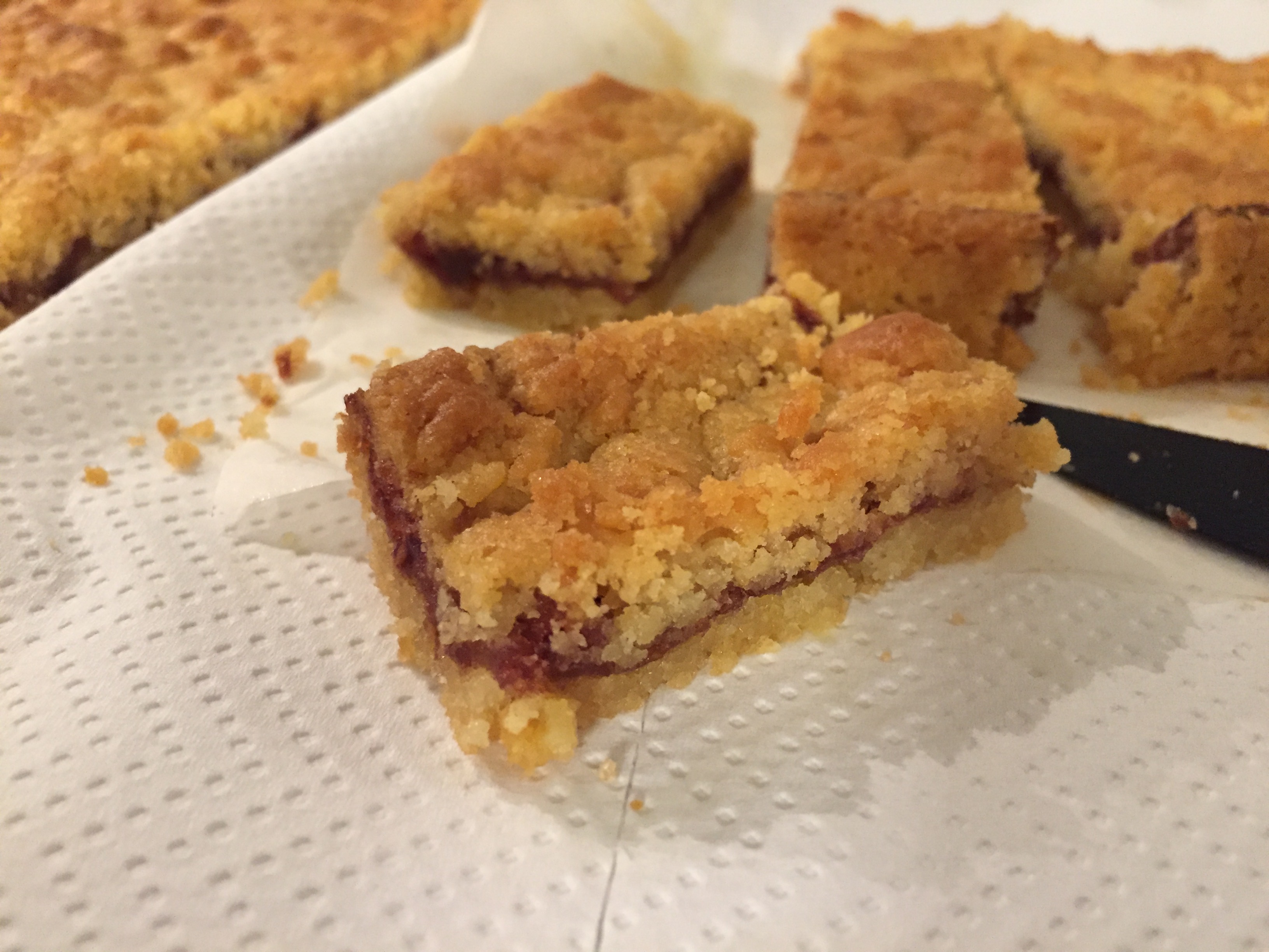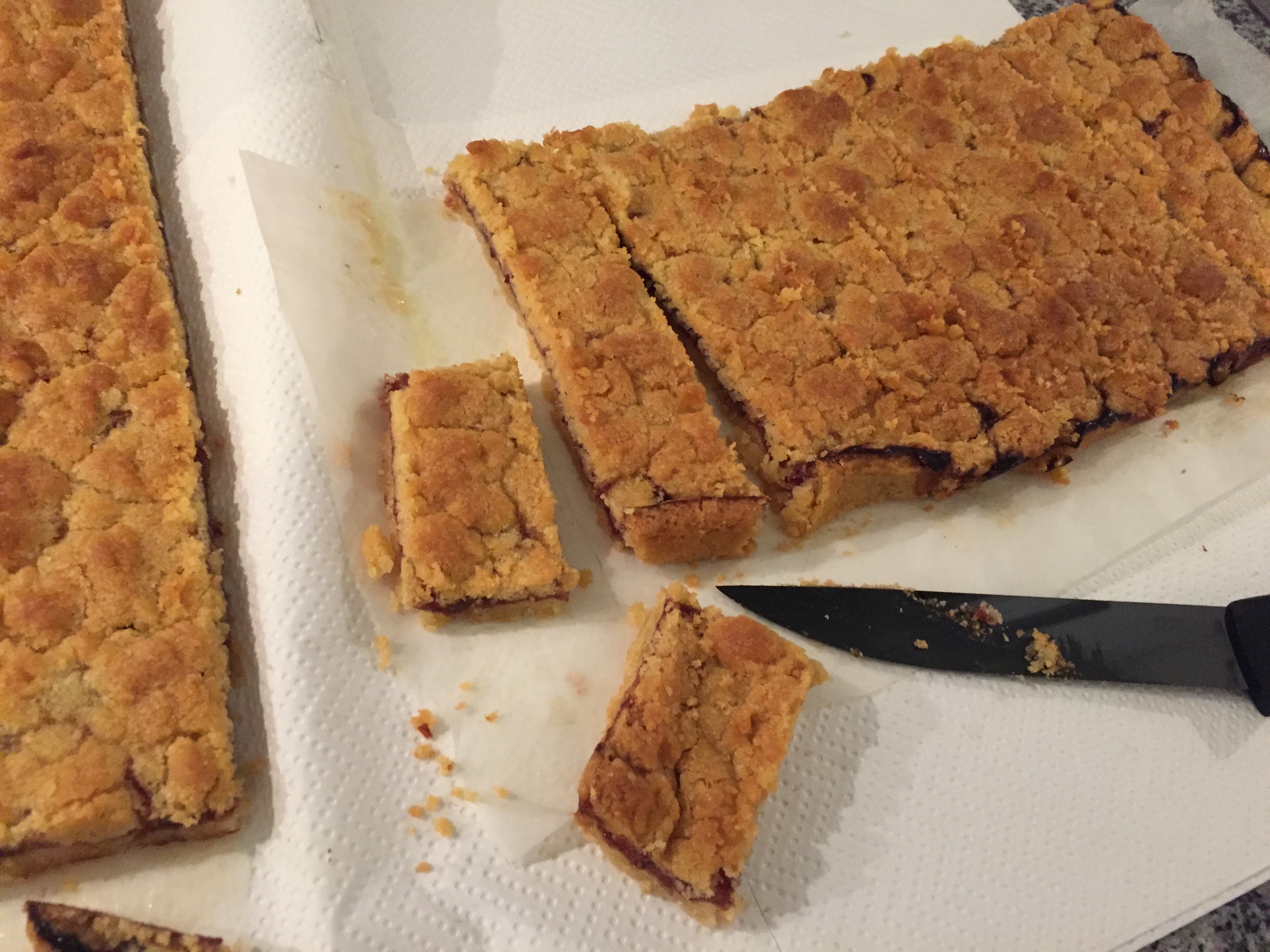 Con una grattugia; grattugiare il panetto di pasta che avevano riposto in congelatore sulla superficie, in maniera uniforme, ricoprendo la marmellata.