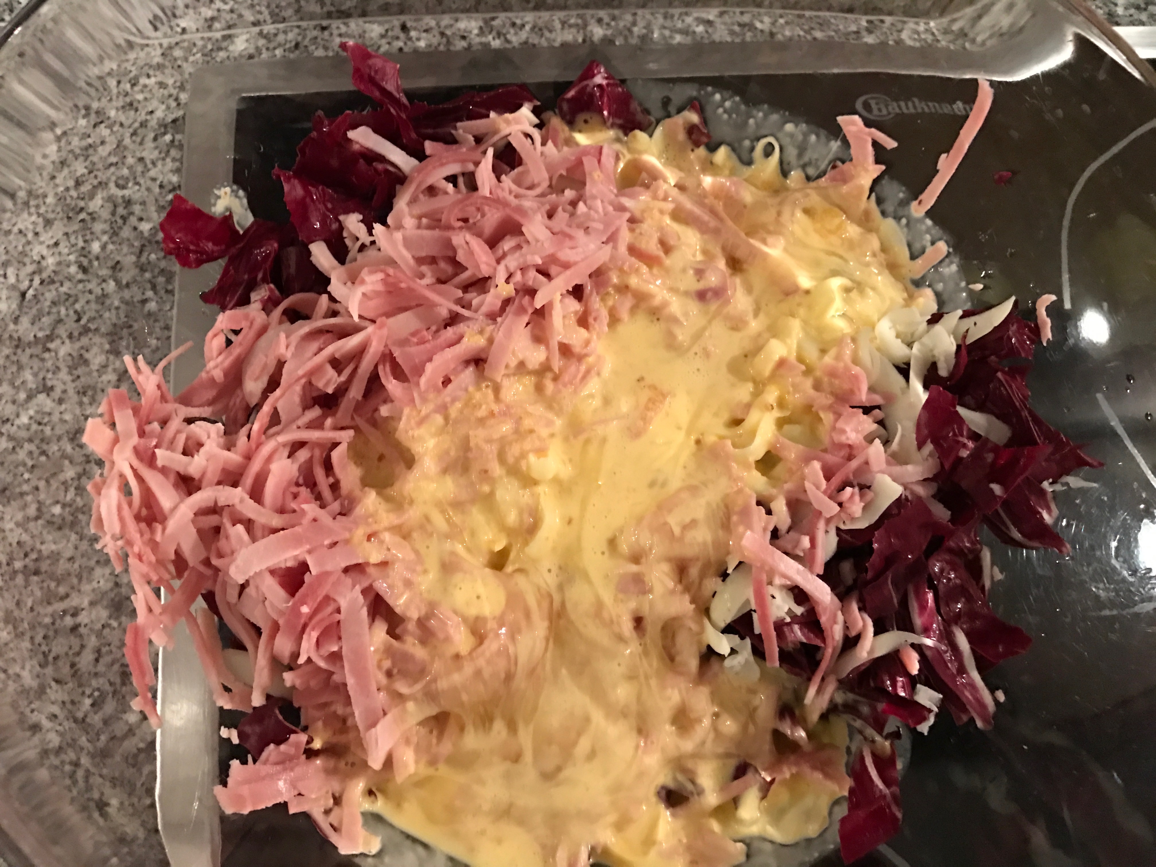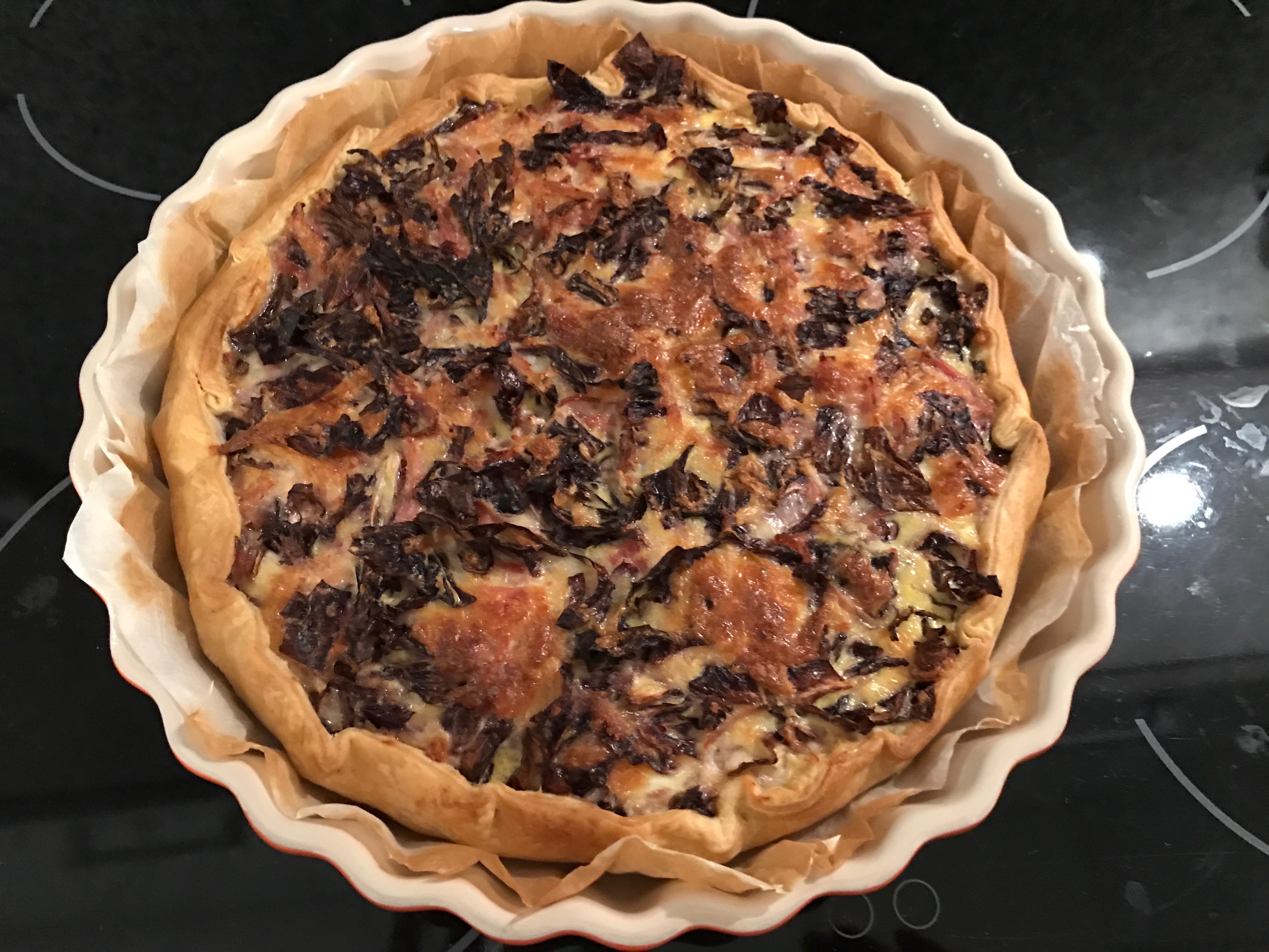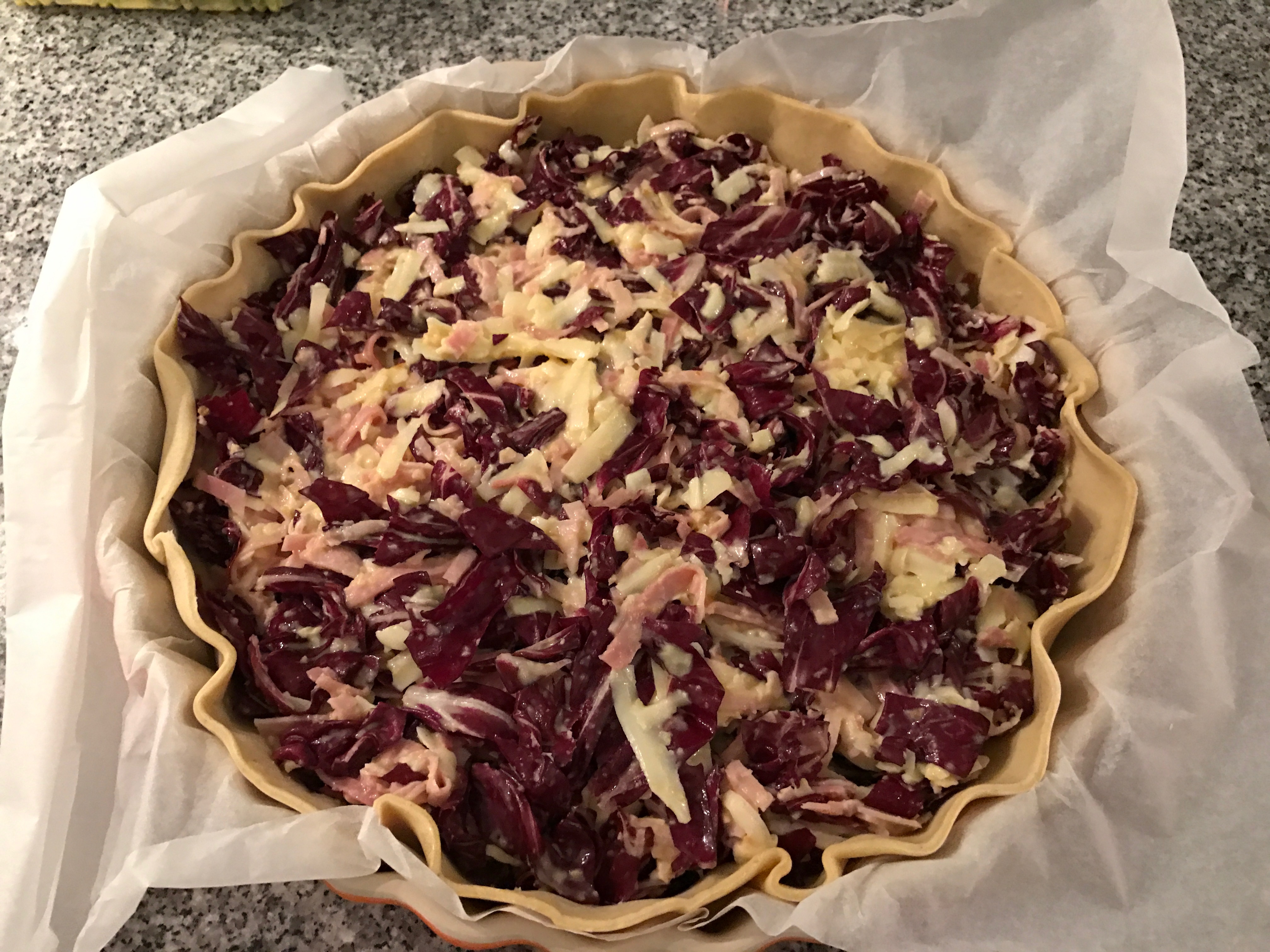 Una ricetta semplice e velocissima per un’ottima torta salata. Un piatto semplice e rustico (se no perché avrei indicato “torta salata rustica” nel titolo ?!?!) ma che vi soddisferà al 100 % ! Il radicchio si abbina perfettamente al prosciutto cotto di coscia, il dolce e l’amarognolo che si completano e si fondono perfettamente in un’armonia di sapori. Sì esatto, avete letto bene, “prosciutto cotto di coscia”. Perché ? Perché lo dico io, punto e basta. E se già state pensando “io userò il cotto normale” vi dico una cosa “fatevi le vostre ricette senza andare in rete a guardare quelle egli altri ! Se siete così bravi mettetevi ai fornelli e cucinate ma non mettetevi a rovinare le ricette altrui !”. Scherzo ovviamente (forse) ! ;-) Buon appetito !
